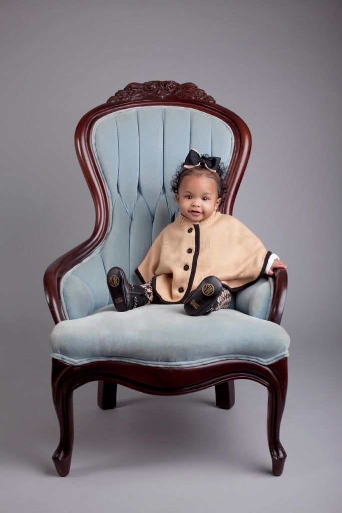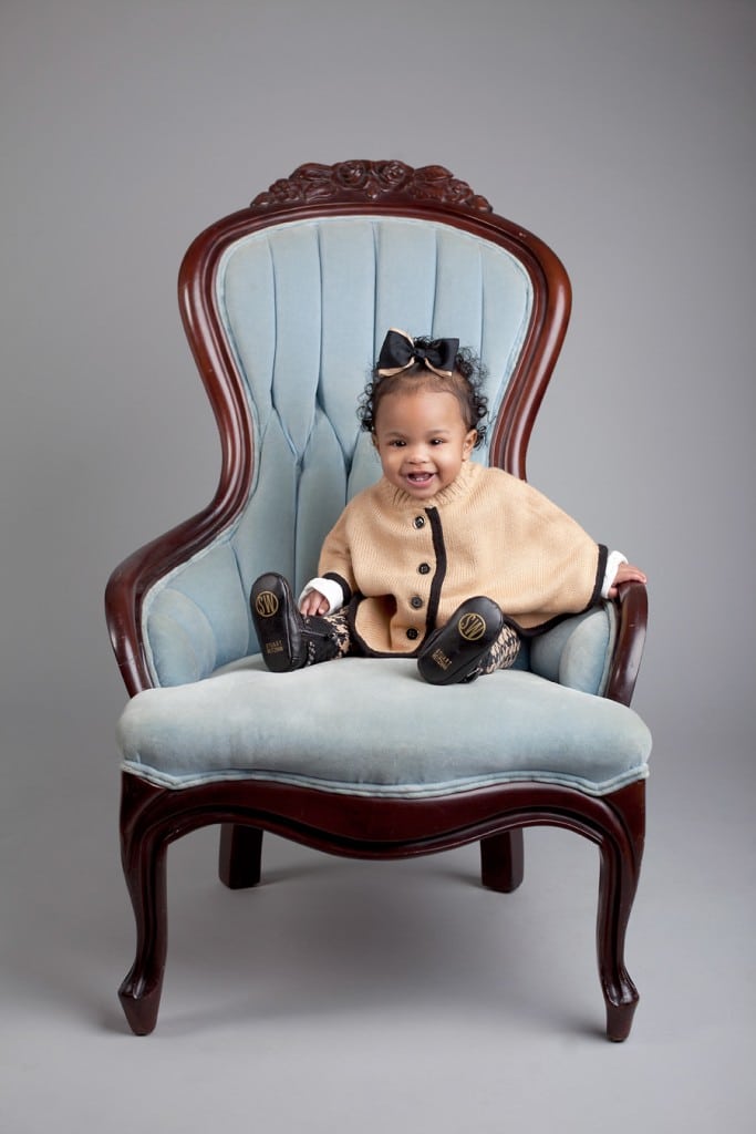 Whether decked out in her winter garb for some nice portraits in my big blue chair or chilling out bare butt by the window, she was having a blast. Her baby babble was so funny.