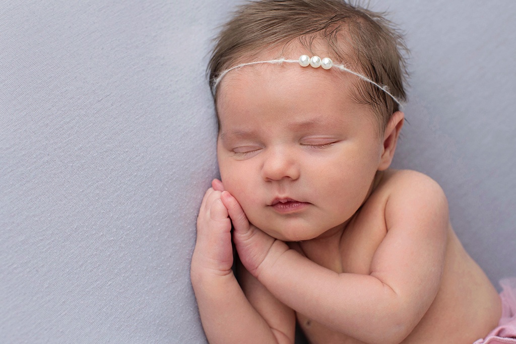 Newborn girlies are so stinking precious. With this session, we brought in some pops-of-color with the cutest swaddle ever. The patterns gave that softness that only a baby-girl can bring into the world. We also went for a subtle version of the baby crowns, flowers and bows that are taking over Pinterest. These cute pearls are another perfect addition for the baby-girl magic.