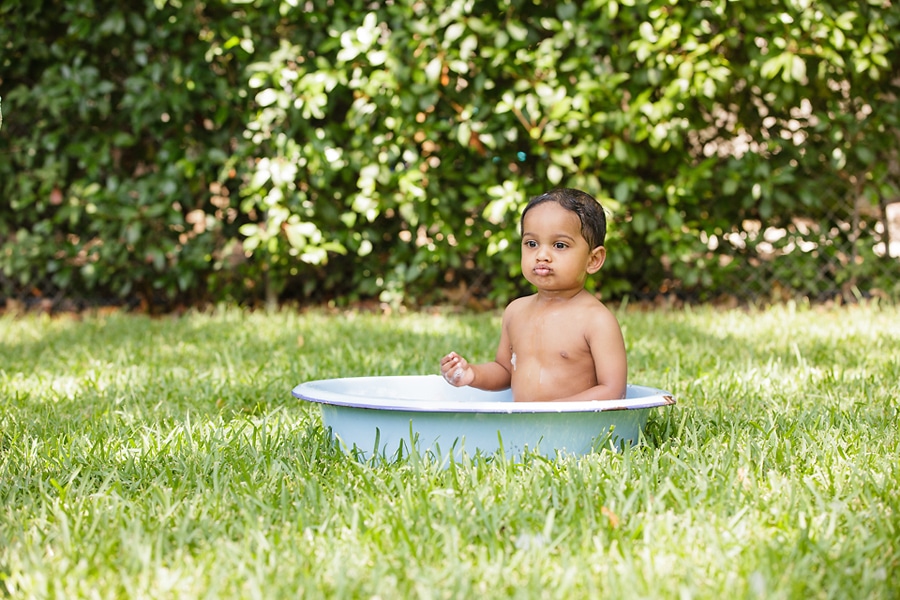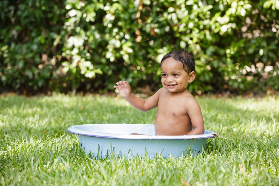 He even ate it outside in the tub. Hey, you gotta go with what works, and in the end we got some happy smiles!