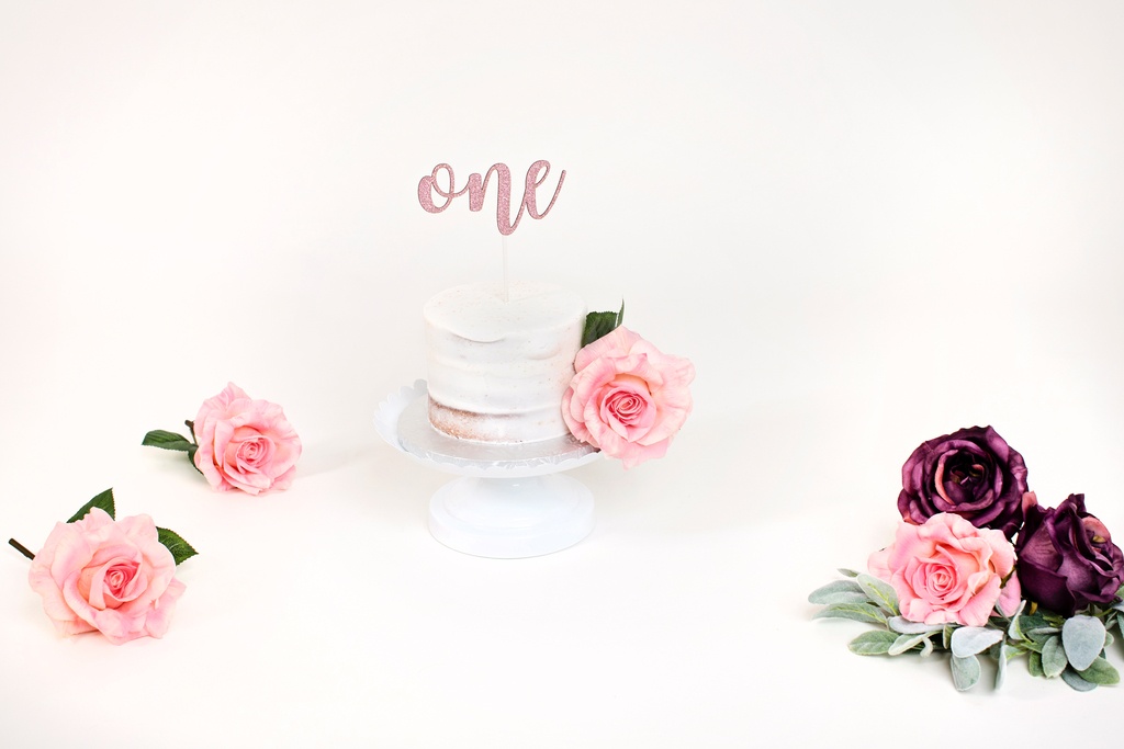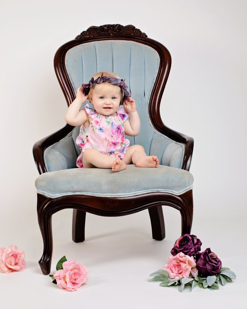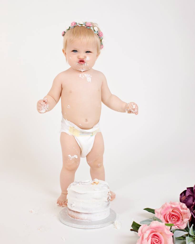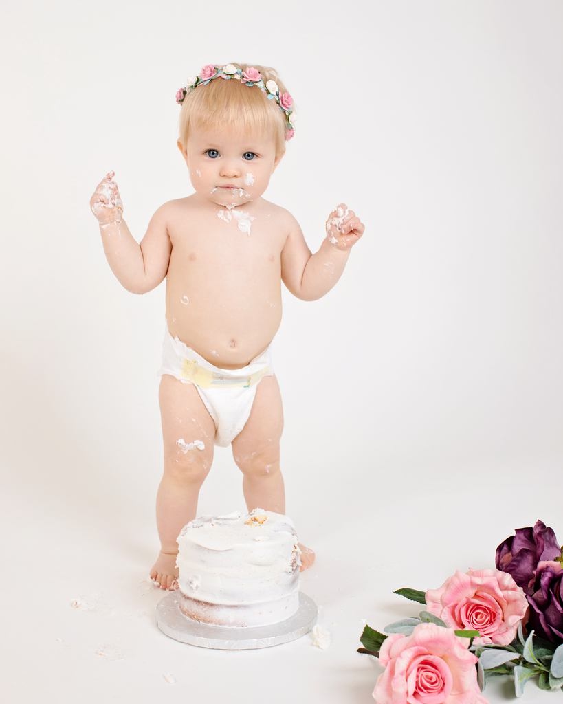Look at this little girl, she is toddling and being a baby model like a pro. She poses like a pro. A one-year session is always a blast, and I love this cake smash. She was ready, and so game to dive right in there. Plus, how cute is it that we kept the flower-theme through most of the settings we played in? That is a major plus of doing sessions in the studio. We can switch up backdrops and settings all we want.