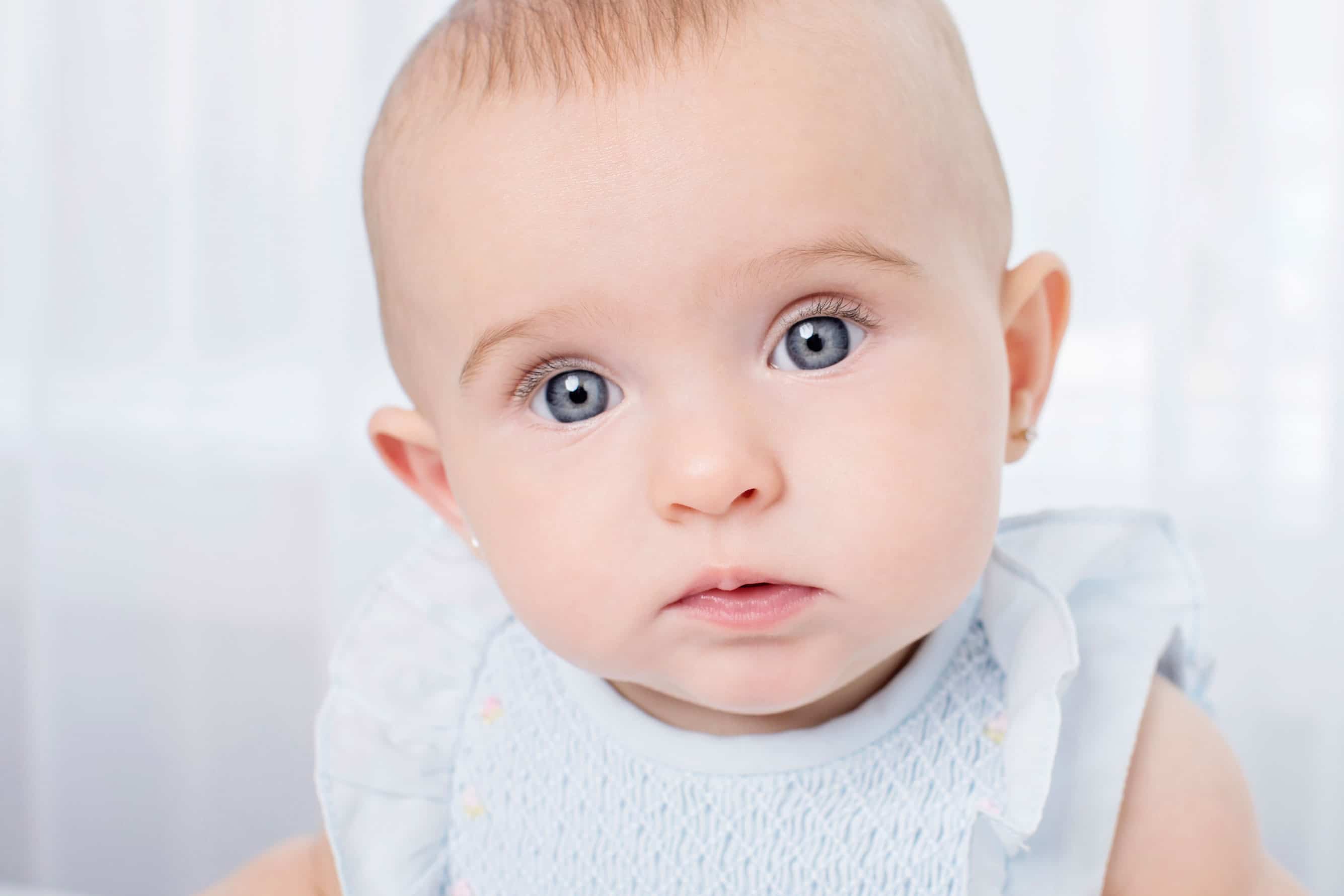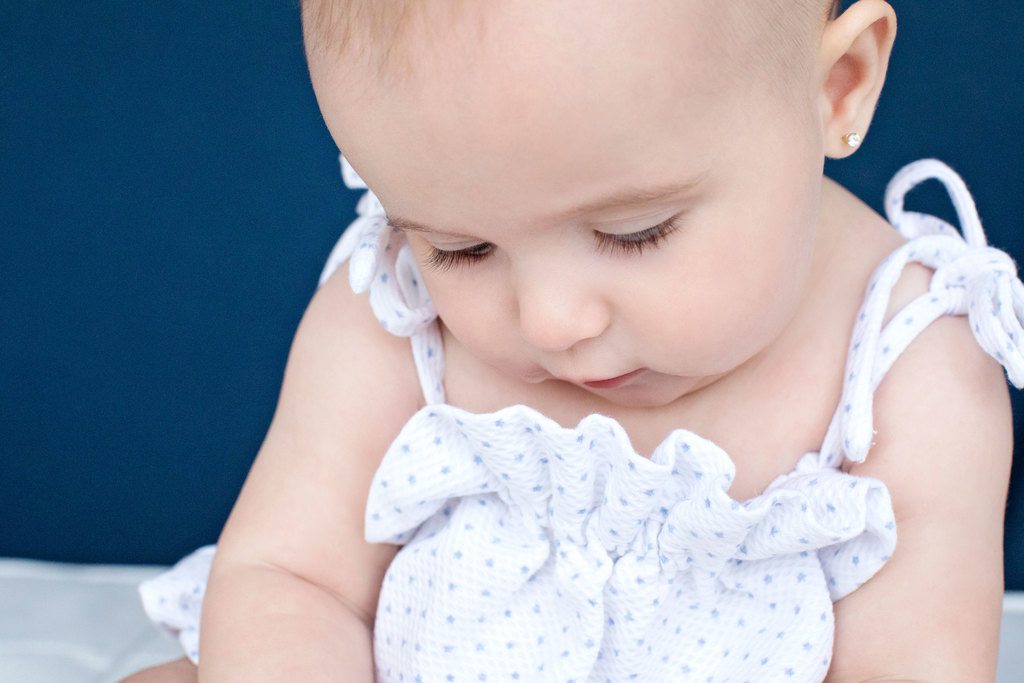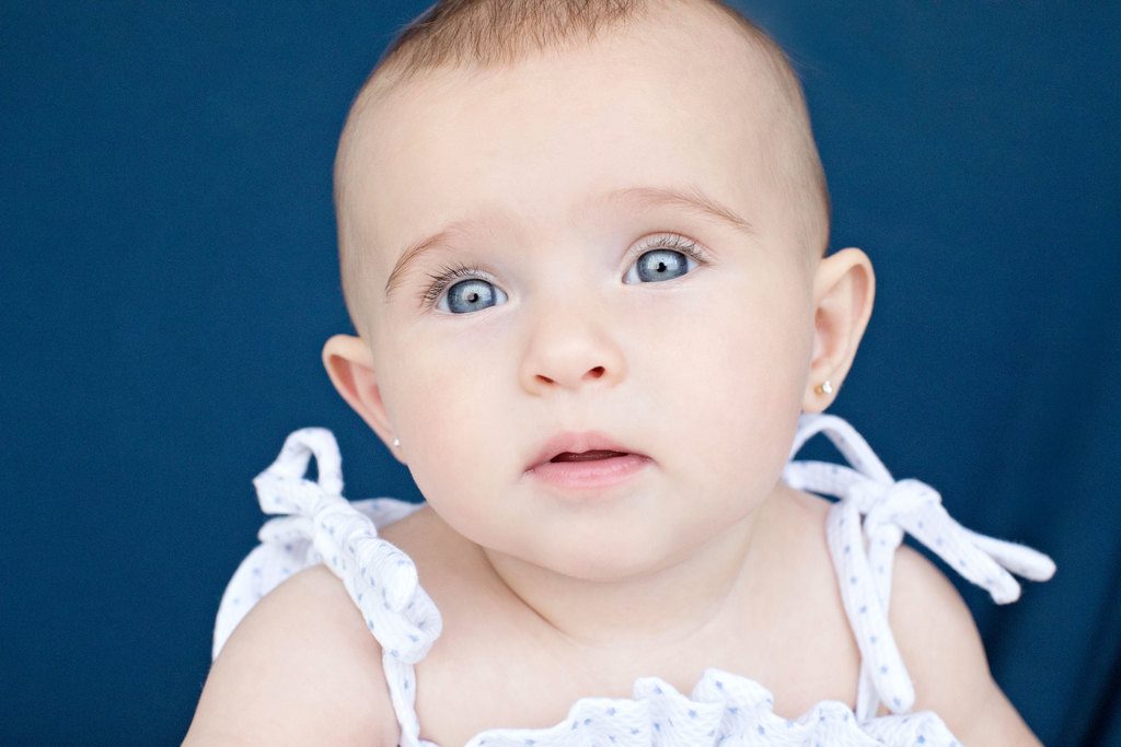 This little peanut… she is just way too cute. She is so sweet and girly. Mom and Dad decided to change her into a few different outfits, and it was a great move. That way we also got to put her in some more backdrops. We decided to keep the “girly” features toned-down, and that really lets the baby shine. Another thing I can’t get enough of is putting these beautiful blue-eyed babies in front of the blue backdrop. Holy cow. It just makes their eyes pop a million times more.