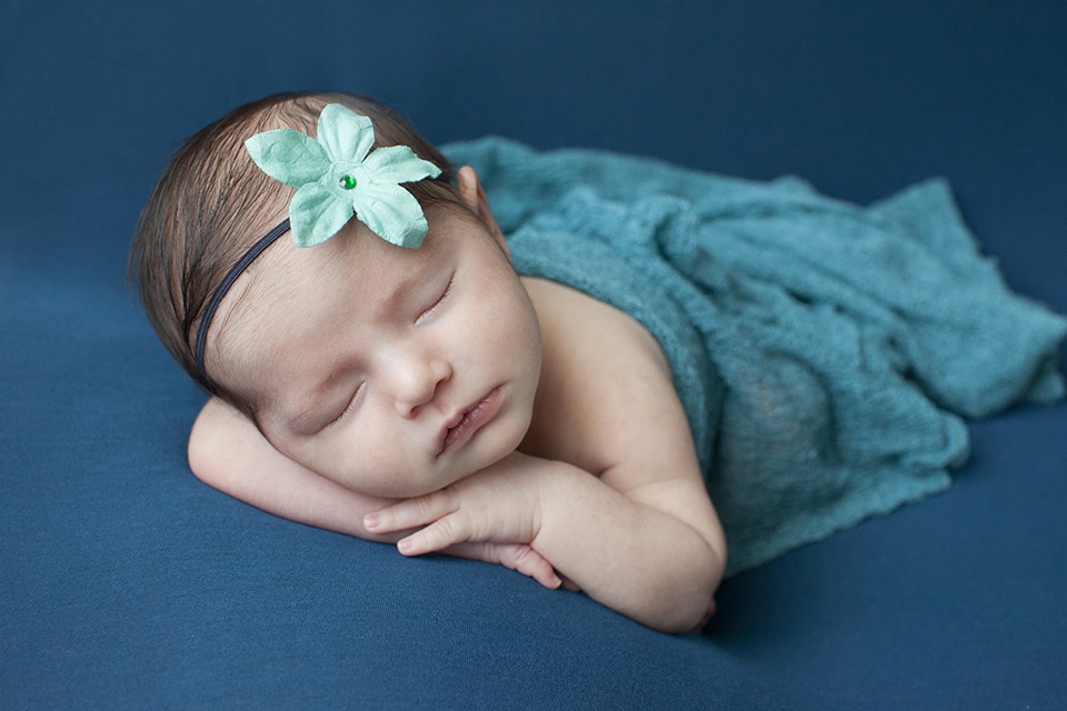 Now, even though baby-pink is the color of baby girls… sometimes it is so fun to play with bold, dark colors. This deep teal is incredible! And… this chickee has a bow for every occasion, so it worked out in our favor. I am also obsessed with how sweet she looks against this stunning color. The dark against her porcelain-like skin, makes her look even more like a doll. Just so sweet.