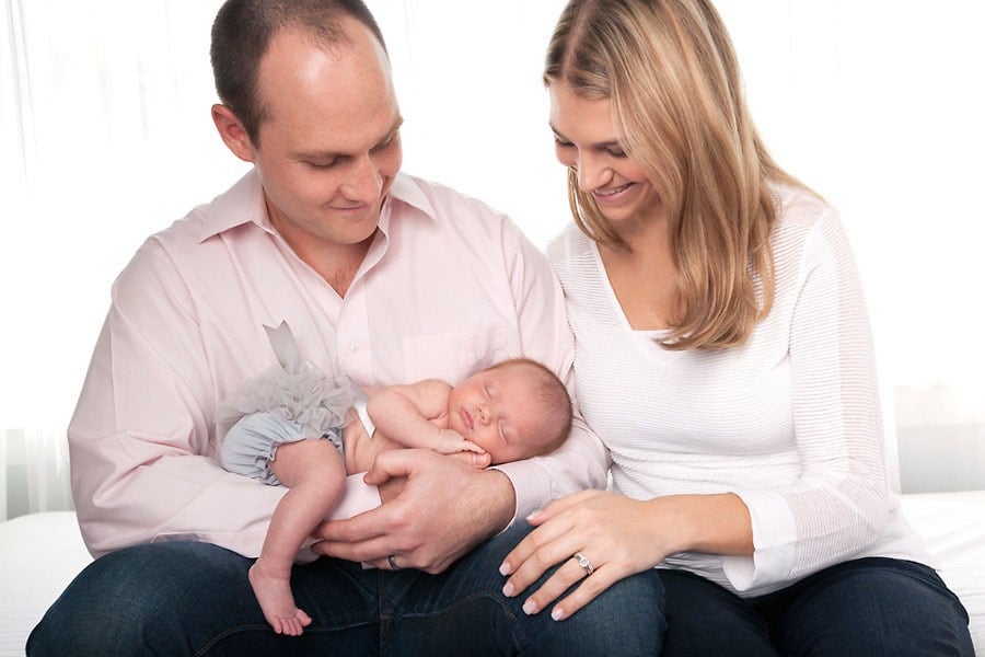 For today, I’ve chosen a bunch of cute photos from a recent newborn photoshoot to show off different poses. There are pictures with mom and dad and pictures alone. Close-ups and whole-body shots. I also used different angles to capture the best part of a pose. The key is variety: your newborn photographer should choose lots of different poses and angles to make the most of your time together.