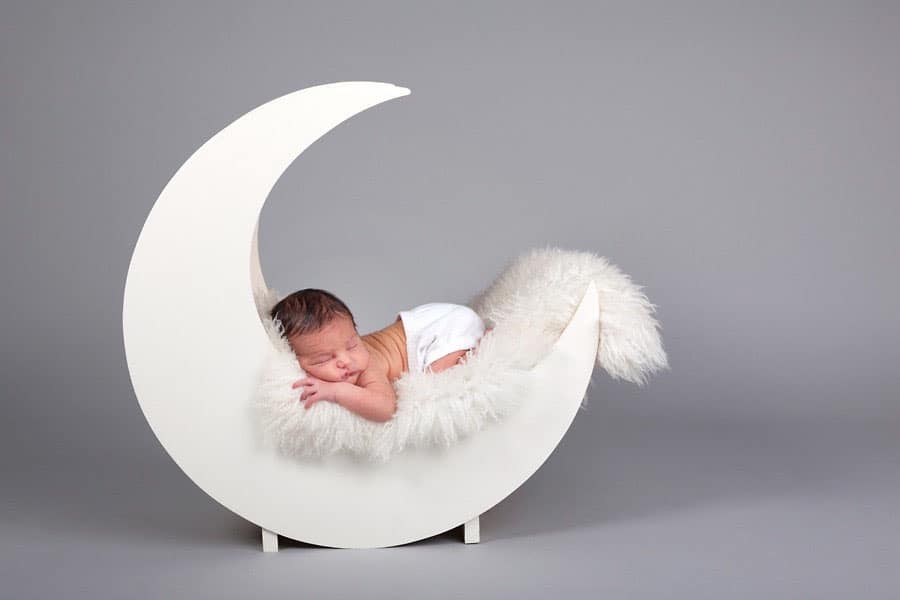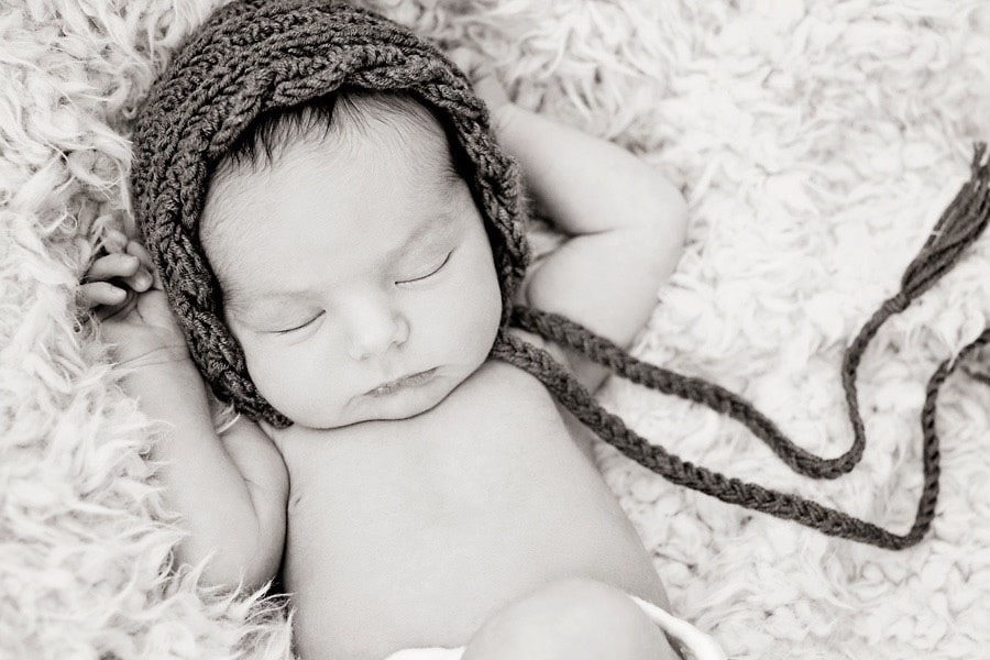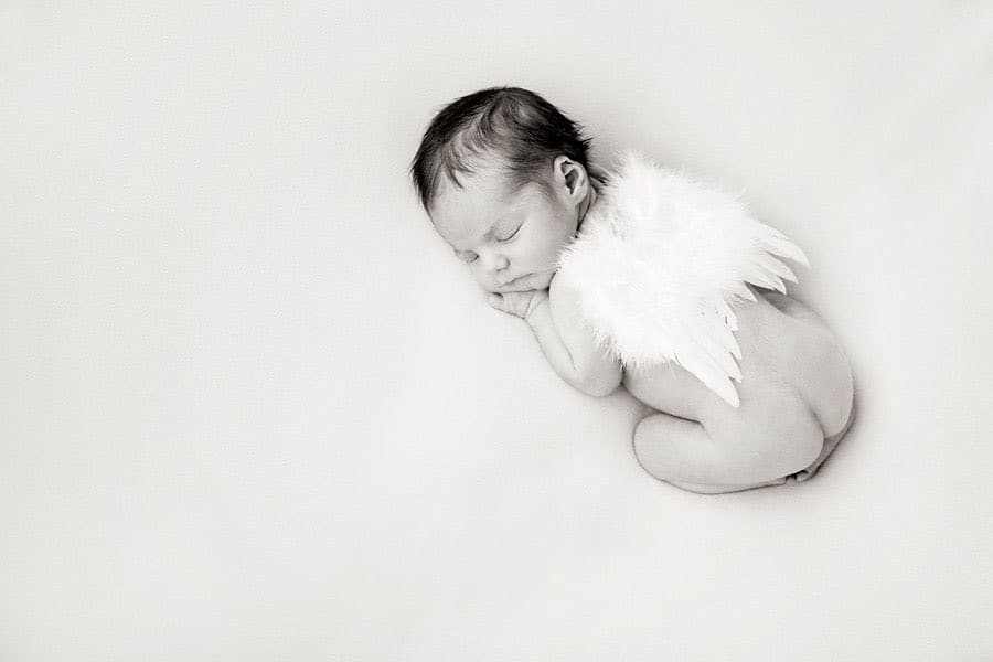I’m a big believer that less is more when it comes to infant photography props. I like to use one or two soft blankets and no more than one other prop, like the angel wings below or a knitted cap. I think too many props distract from the subject, your beautiful baby, especially if they’re in color. Even a few additional props can create a lot of “competition” for the viewer’s attention. Keep it simple.