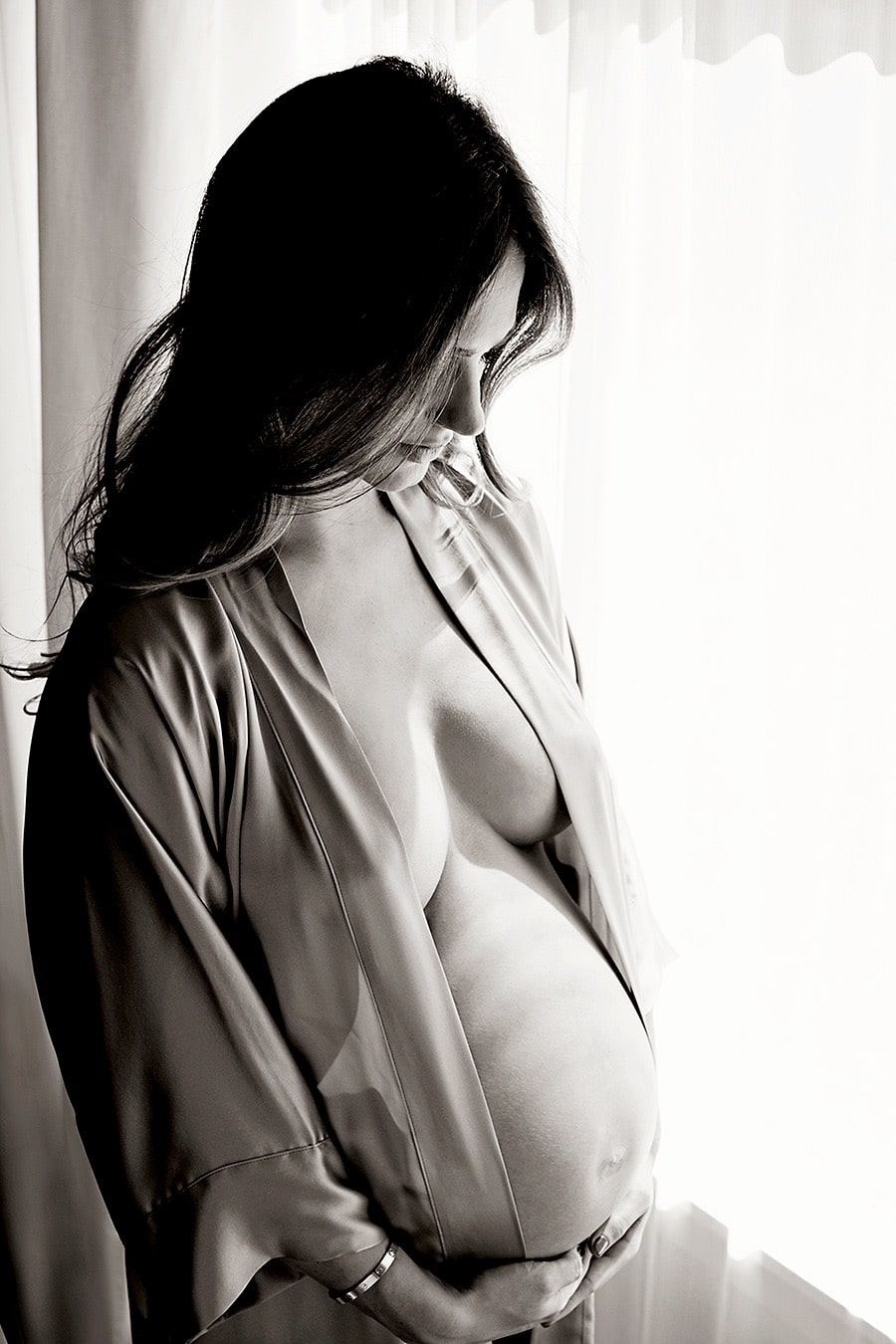 A woman’s body changes so much during pregnancy. I like to wait for maternity photos until the belly is nice and round, but not uncomfortable. So around month seven and a half or early eight is a good time. A lot of women find that waiting longer brings swollen ankles and a general feeling of discomfort from being so full of baby. And I want all my clients to feel totally beautiful and sexy during our time together.