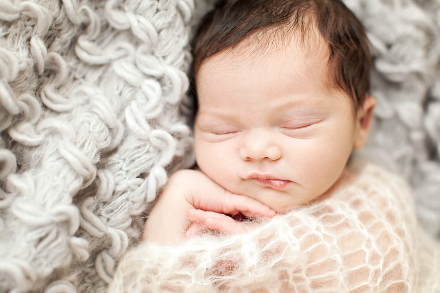 As with the baby in my previous post, this newborn also has an impressive head full o’ hair. Not only that, but she had delightfully round cheeks and adorable fat rolls that only babies can pull off.