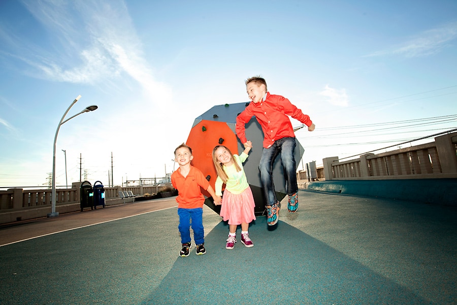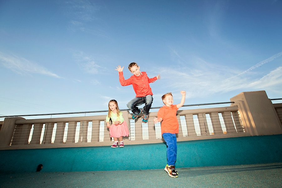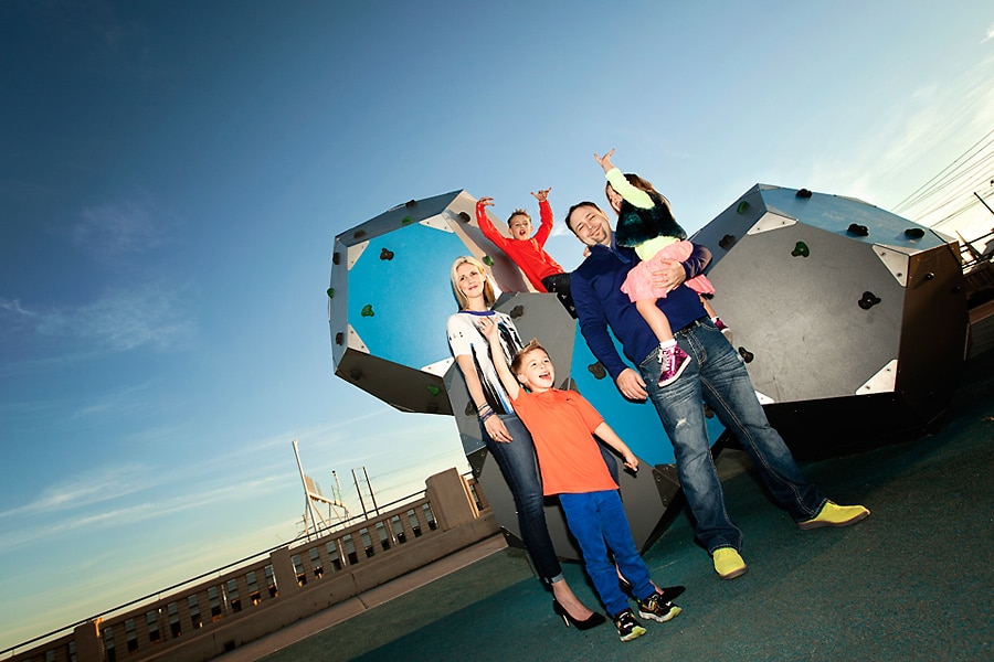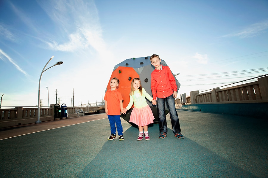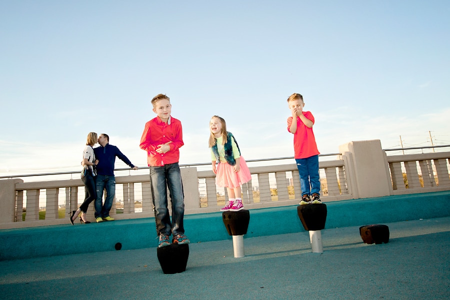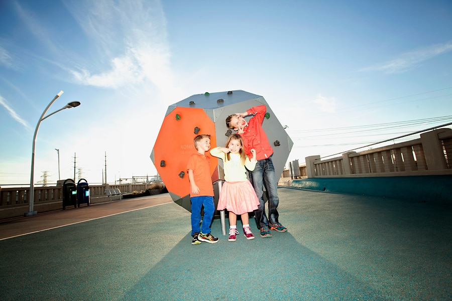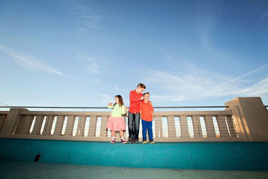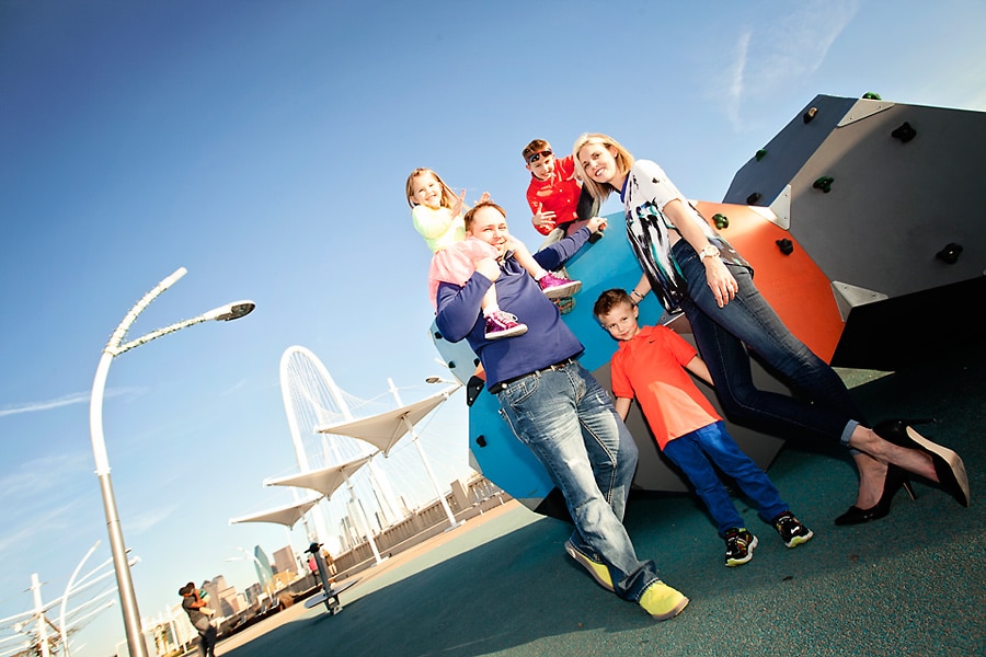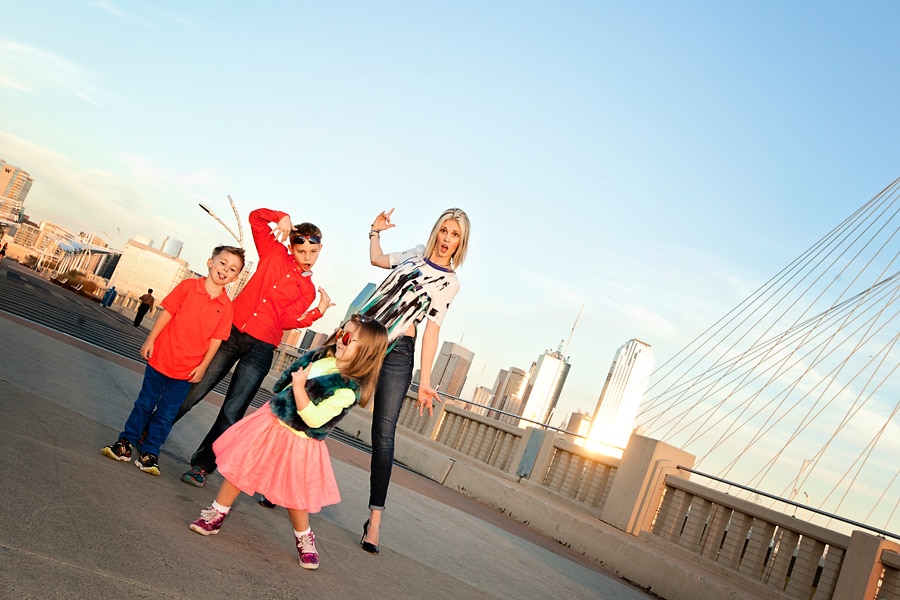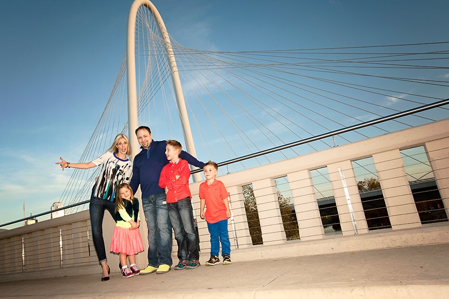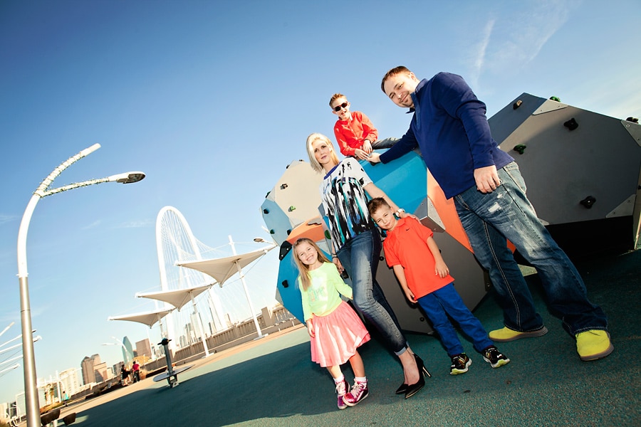 Spring weather is also perfect for family photos. Besides some picturesque parks that I’ve featured before, Dallas also has some areas with cool art and architectural features, like the Continental Avenue Bridge shown here in this set. This family wore their fun and funky colors to go with the bridge’s unique bold features.