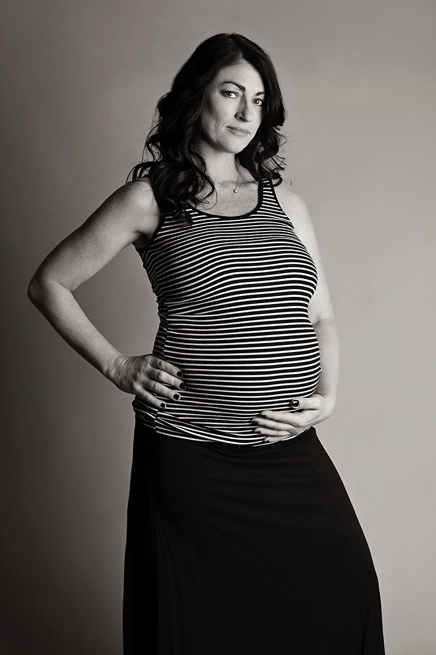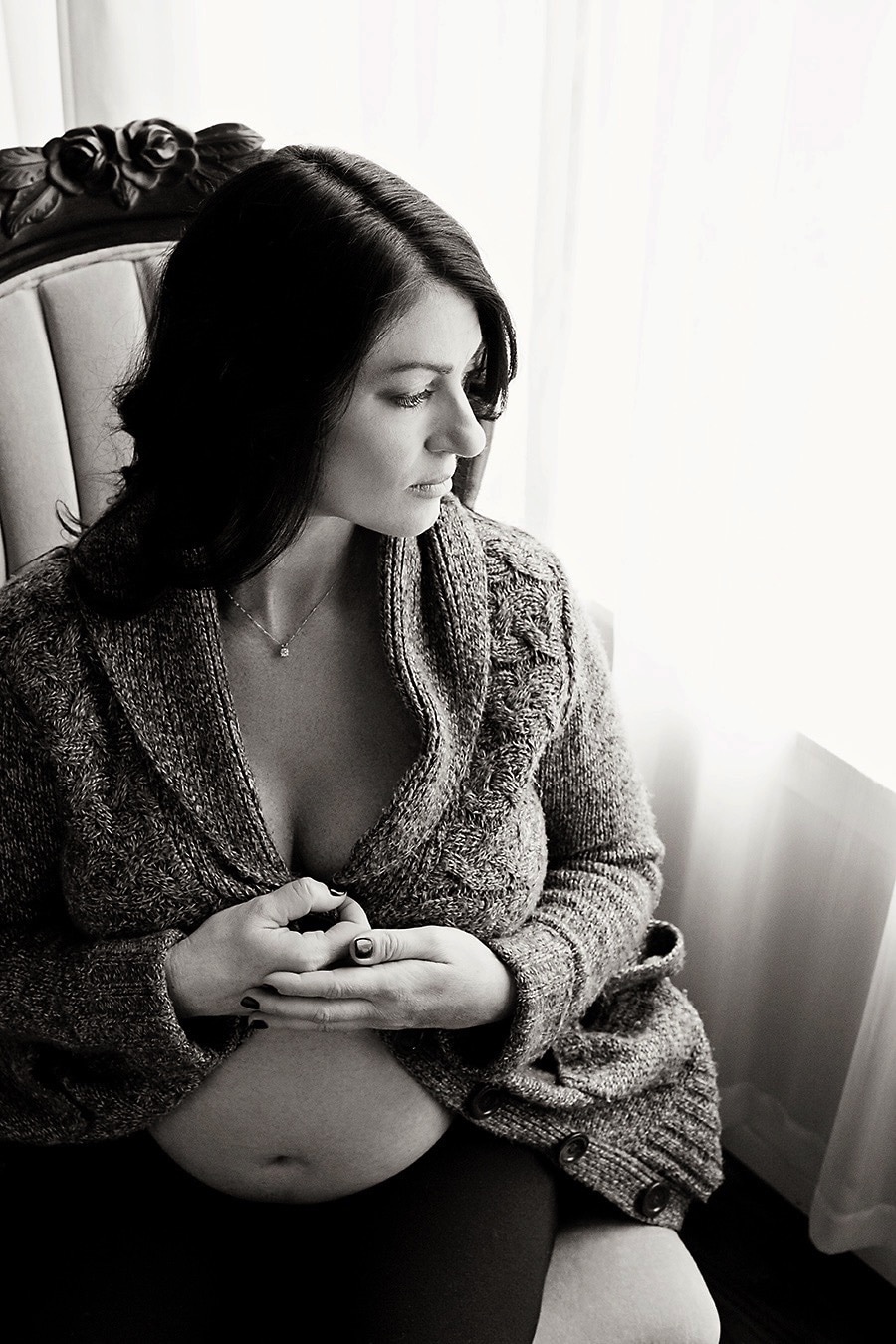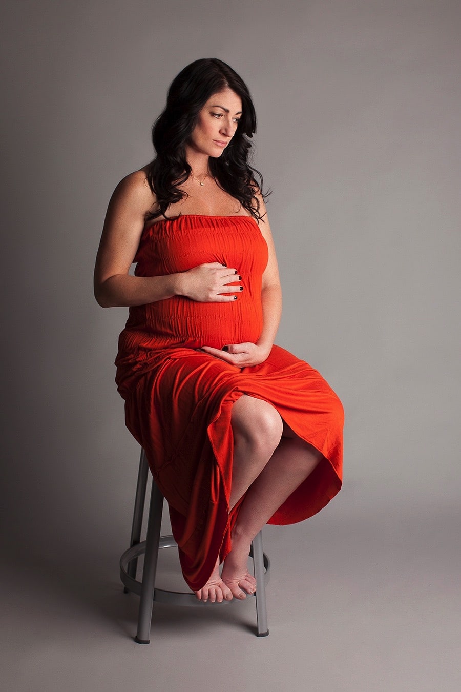 I pride myself on empowering my clients so they can totally own it and feel fabulous. Many of them rave about the experience. I think this is because I really listen and also provide a lot of encouragement. There’s no time limit or specific number of outfit changes, so we can try a lot of looks, see what feels the best. Many women find that after a little time “warming up,” they want to try some nude or semi-nude maternity photos, as well, with tasteful draping and soft lights.