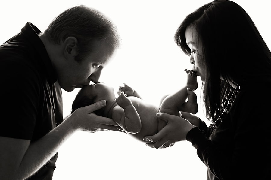 Whatever the answer, this little lady is the epitome of the cherubic, chubby baby. She slept through most of the shoot like a champ, waking up so I could capture some deep, soulful stares as Mom and Dad held her. We had a fun time putting different headbands on her – somehow they just highlight those round cheeks and fat rolls in the best way possible.