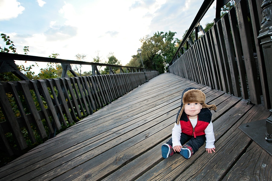 It was totally worth it because that baby boy had the best winter outfit – a bright red vest and jeans with matching red plaid cuffs, and that great fur-lined aviator cap. It all just popped in the outdoor setting.