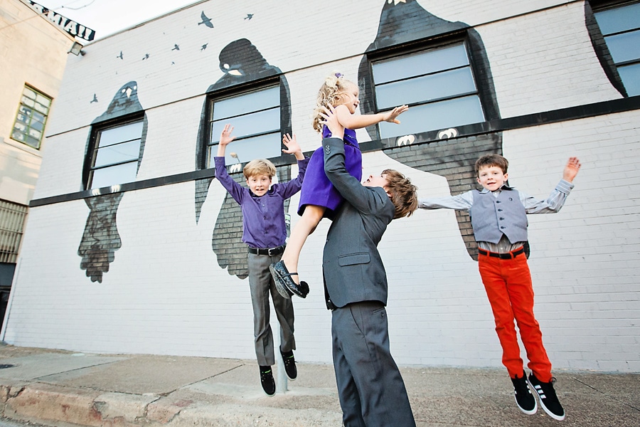 The urban location with its distinctive funky vibe was another great choice for this colorful family. The black and white building artwork in particular sets off their bright clothing choices and energetic personalities.