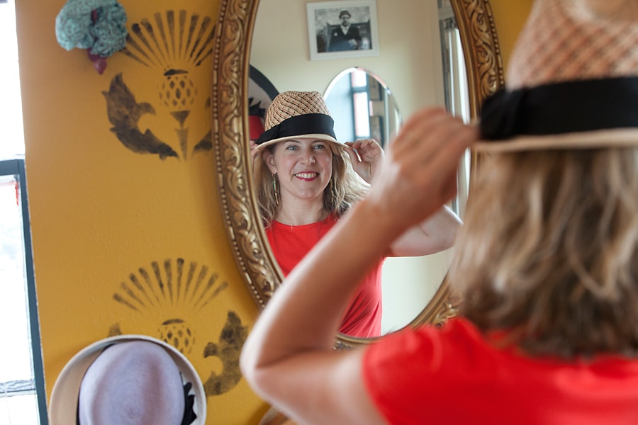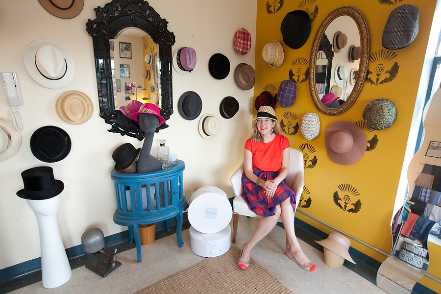 The hat-making process is very interesting, and Cassandra is a true craftswoman, making each hat by hand. Her studio is cute too, with hats all over the walls and lots of bright colors. If you’re in the neighborhood, be sure to stop by. And regardless of your location, check out her website to see more of her hats.