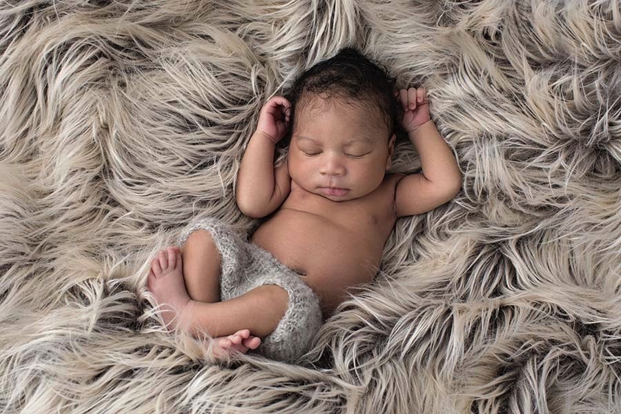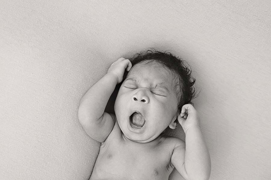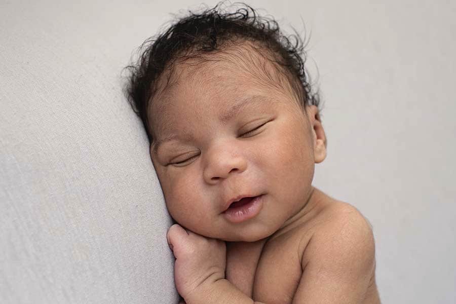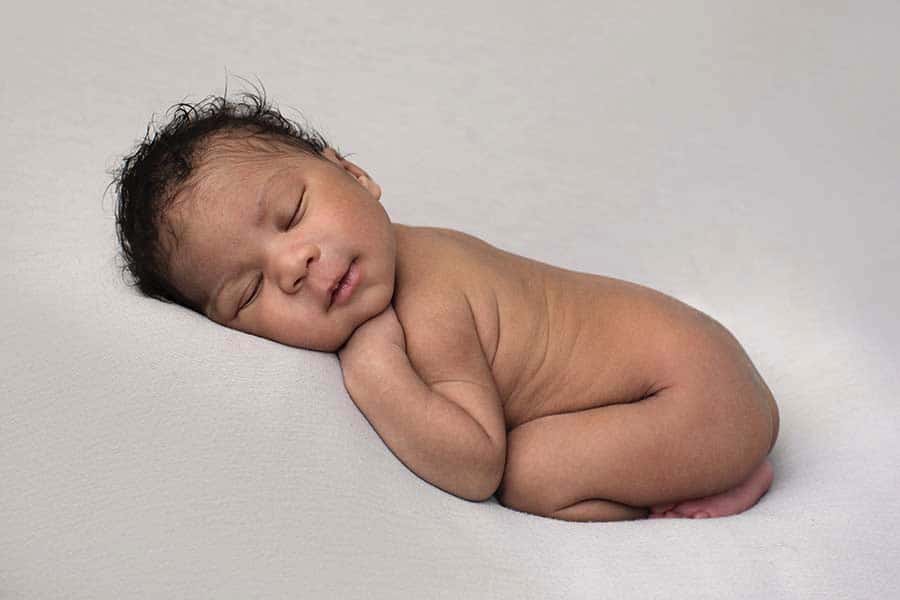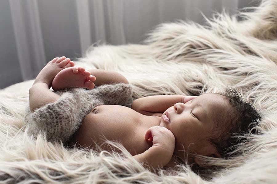 Lots of moms and dads ask about what time of day they should schedule. Newborns don’t have any particular sleep schedule — pretty much the entirety of their days is sleeping, eating, and pooping. So there’s no “best time” to schedule a newborn photo shoot. Think about instead of your own schedule and comfort. I never rush, so we will have three or four hours together to capture the best images possible. I deliver 75 to 80 pictures and they’re all keepers!