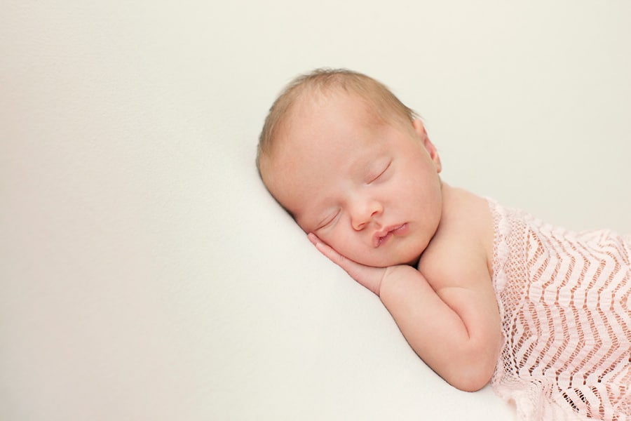 I don’t use a lot of other props because these adorable subjects are the greatest accessory for all my photos. They don’t need a bunch of bells and whistles that could be distracting. But a few carefully selected props used sparingly in this infant photo shoot, like a pink tulle tutu, flower headband, and pink ruffled diaper cover, can add to the overall charm. But honestly, she, like most babies, did not need a single thing to make her any more perfect.