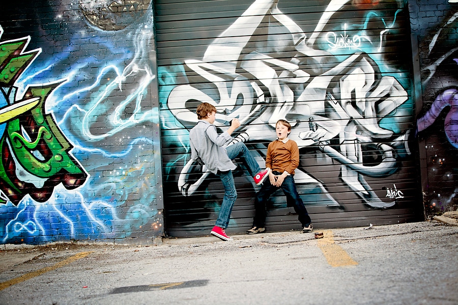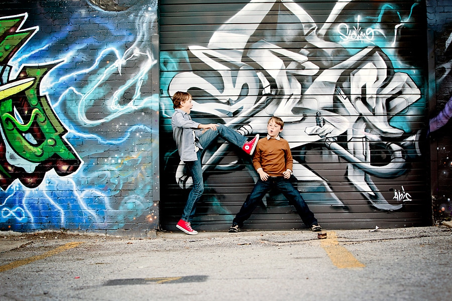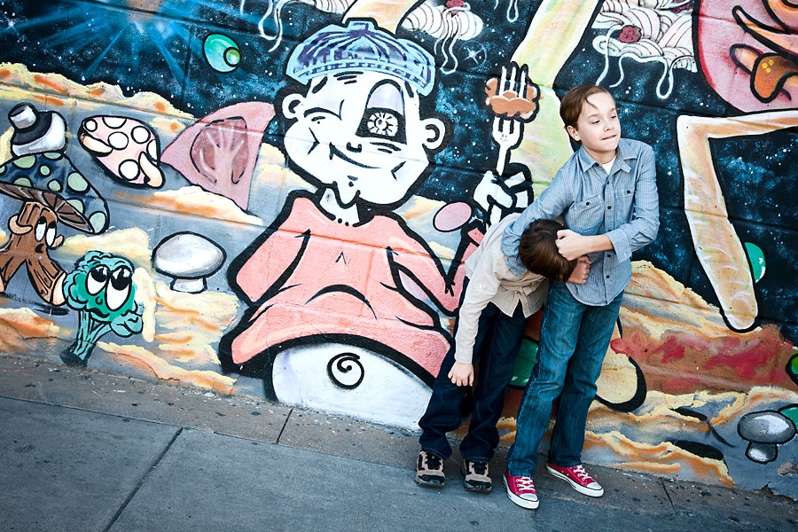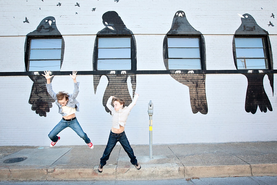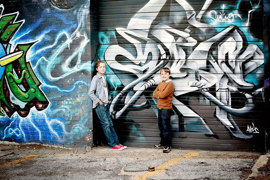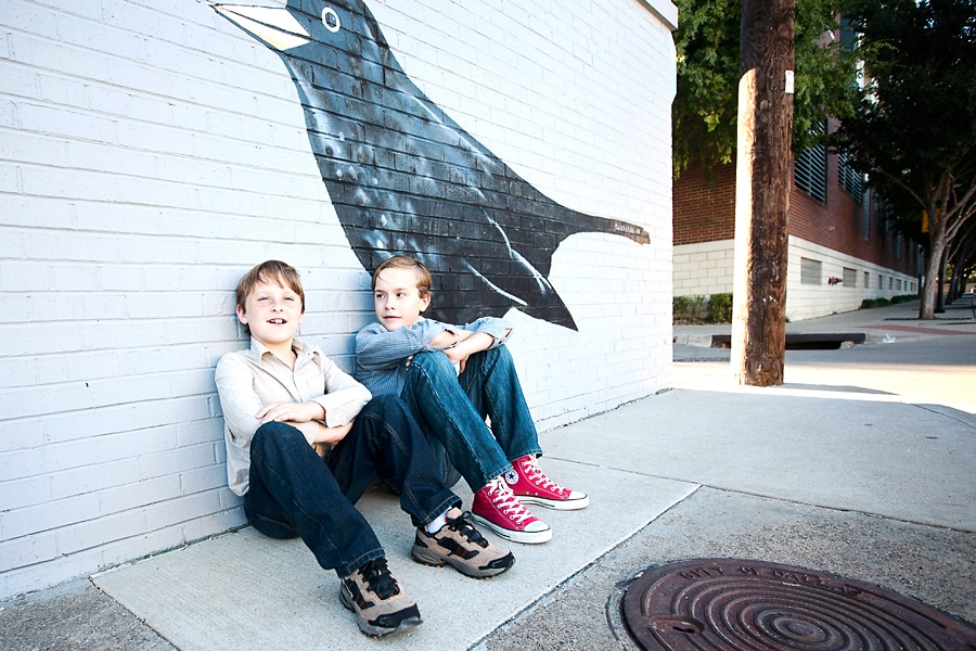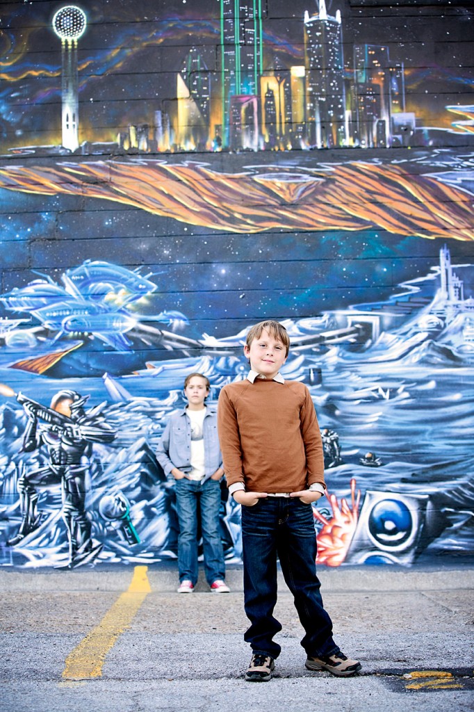 Dallas has several visually interesting areas, and Deep Ellum is one of my favorites. The graphic wall murals, building art, and unique architecture make Deep Ellum a great backdrop for photography. Austin often gets a lot of attention for being the cool Texas city, but Dallas has so much more than people give it credit for. I think one look at these Deep Ellum boys can show that. It especially lends itself to working with child and family photography since kids love to interact with the art itself, as seen in this set. Deep Ellum’s cool vibe in particular, is perfect for older kids who like the “cool” location combined with colorful artwork.