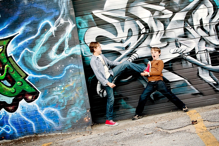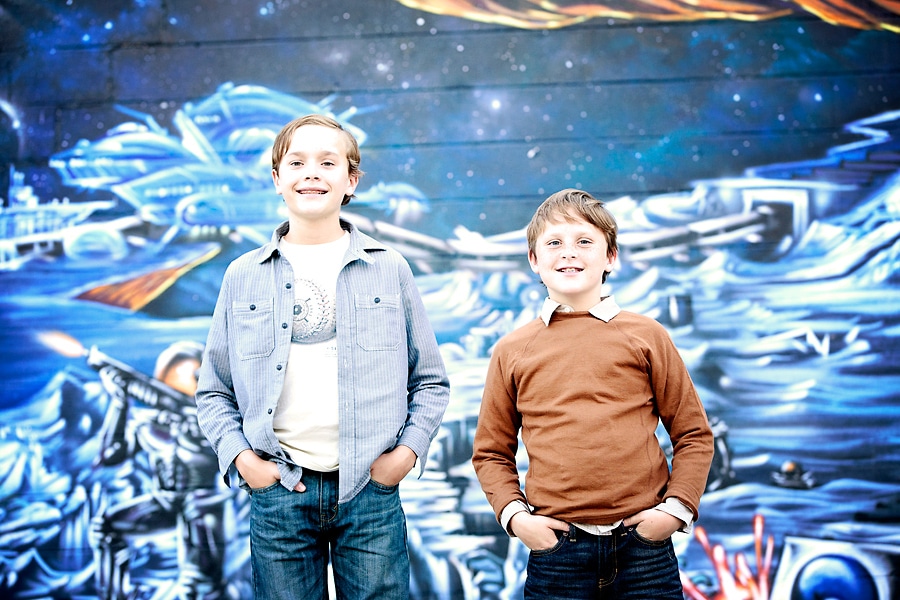 These brothers were hysterical. They loved play fighting with one another but were also very sweet. I think you can see this in the photos – they easily switched between silly interactions and more serious and traditional looks. Mom was worried that they were being too crazy during the shoot (as many moms do), and that I’d have nothing to work with. But I got a whole range of emotions, poses, looks, and backgrounds. Kids I work with are never as bad as their parents fear they are.