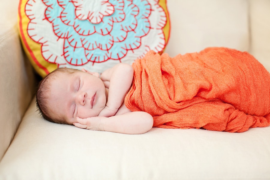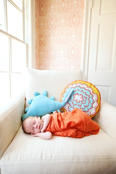 They wanted a newborn photo shoot that also incorporated their home’s designer style. Their house had great colors, patterns and pieces, creating some lovely backdrops for our snuggly subject.