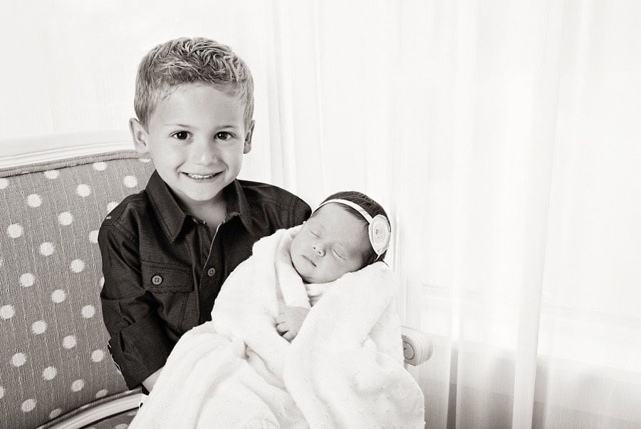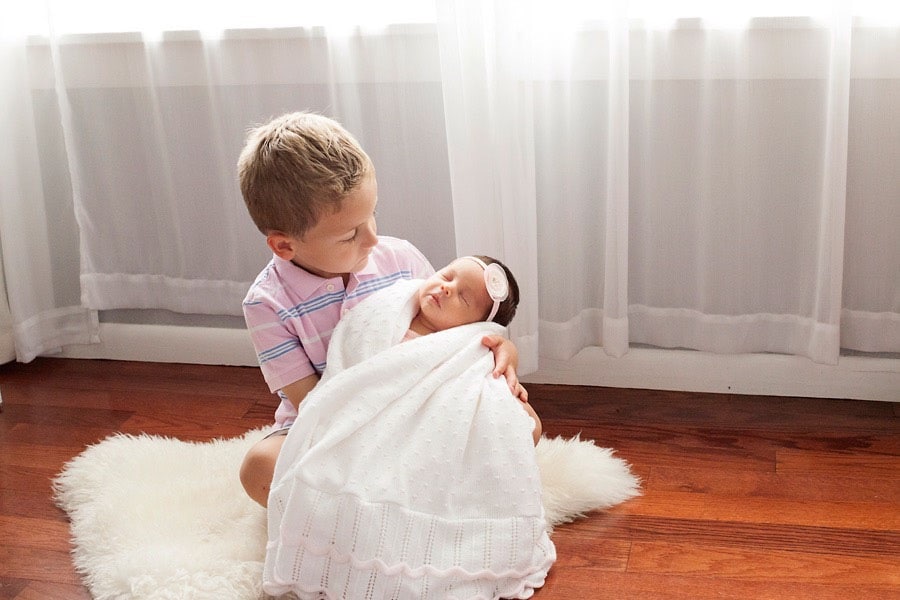 We shot pictures both indoors and outside to get a variety of looks and I love the results. There’s a glowing happiness to this family photography and big brother was possibly the best behaved older sibling ever. This boy smiled like a champ. He never got tired or cranky and was so adorable, handsome, and polite. He was willing to do whatever I needed to create some of the pictures you see below, and it shows. The photos of him with his sister are particularly precious.