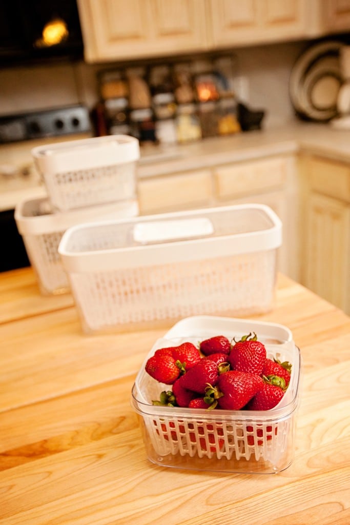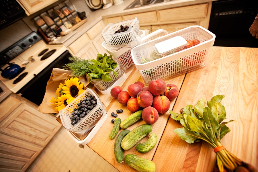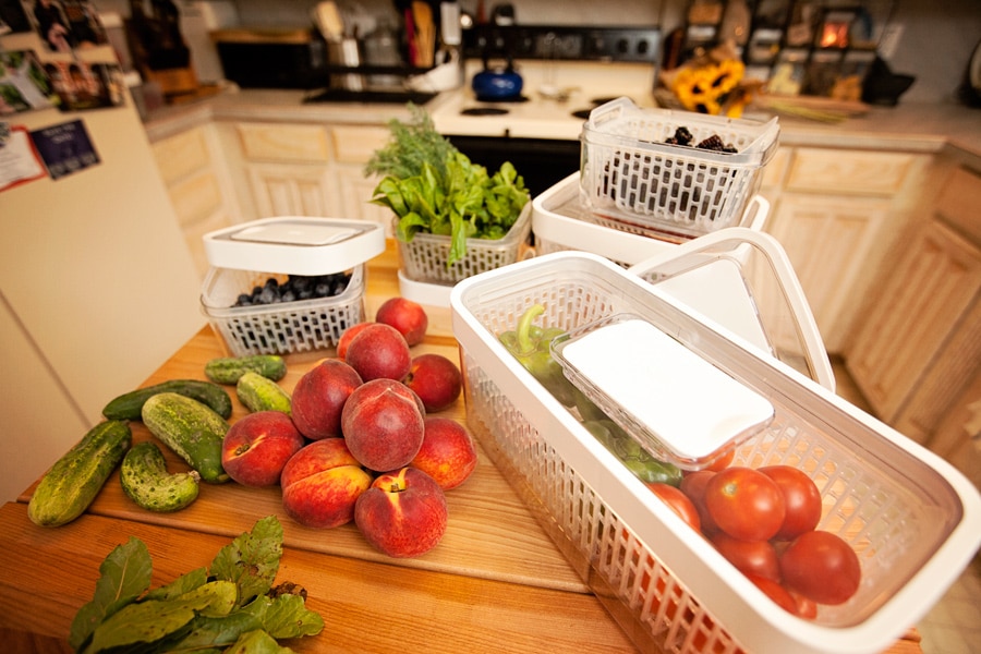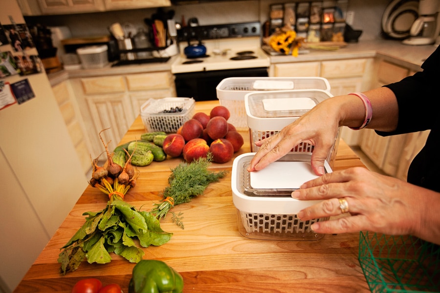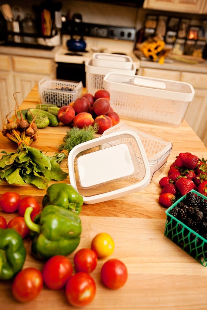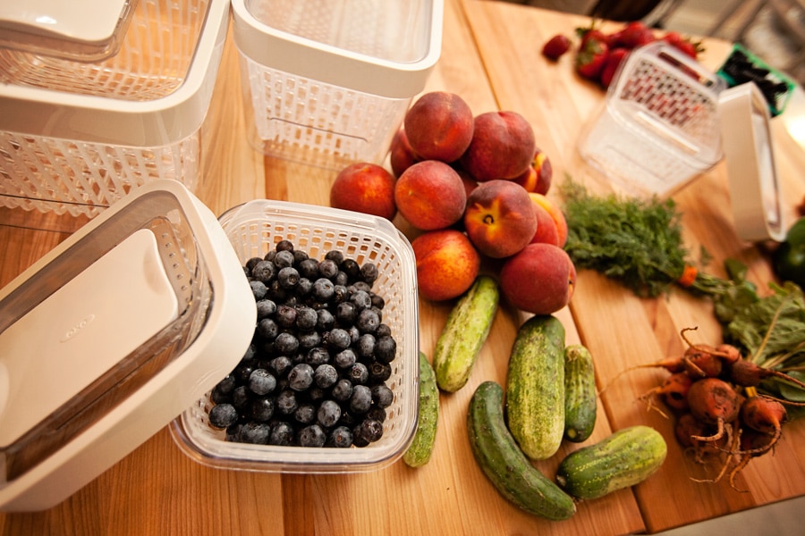 I went with Jackie, the Container Store’s Special Events Director. She picked out a ton of fresh fruits and veggies and then we headed back to her place so she could prepare some food for a get together with friends and family. The products they were featuring were The Container Store’s line of kitchen storage containers by OXO. These have some pretty nifty technology in them that can keep produce super fresh for a really long time – check out their post for more info on how all this works.