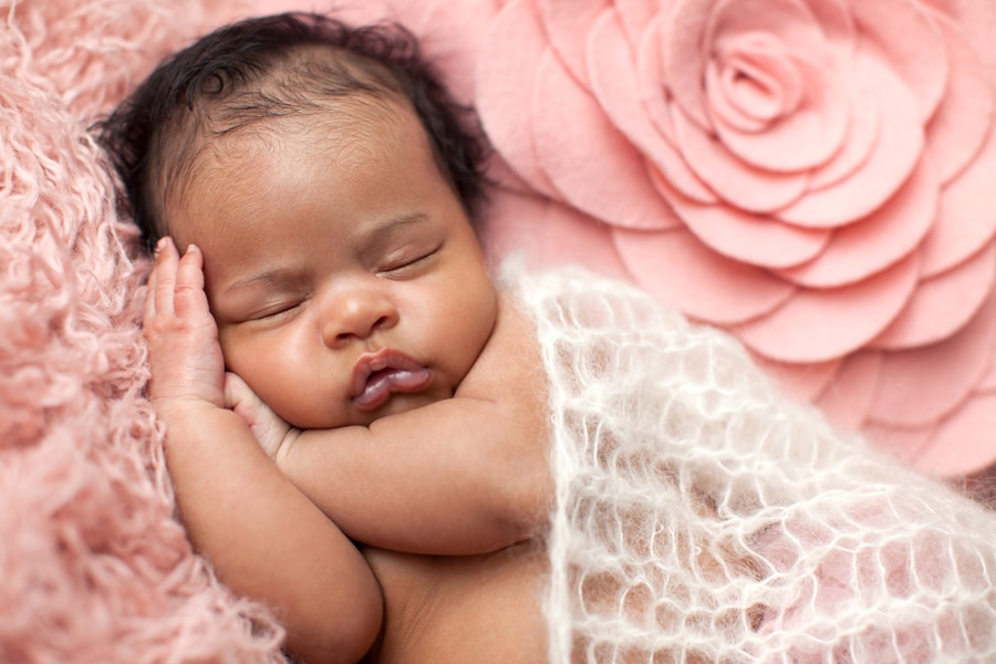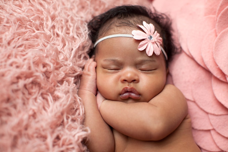 The expressions this 3-week-old baby made during this session are great. You wouldn’t necessarily think it but even at 3 weeks old baby sleeping patterns are pretty different from their first two weeks. They don’t sleep quite so much or as deeply as they do in those first several days after being born so it is a bit harder to get them to sleep for a session. However, this little one was a great sleeper!