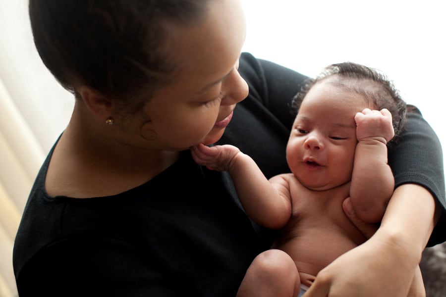 We had a good sleeper here, nonetheless, and we were able to get a number of great sleeping shots. We also got plenty with the little one gazing up at Mom and making faces for the camera which is the upside to not sleeping through the whole shoot as a brand-new newborn would.