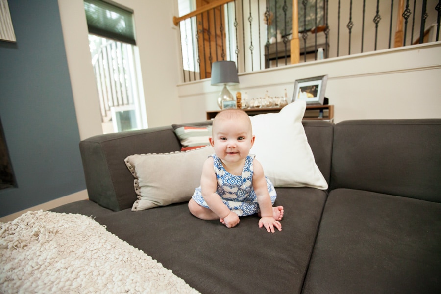 This session features a family with one of my Baby Plans, which includes 3 photo sessions covering the major milestones of the baby’s first year. We shot their daughter’s newborn photo session in their Dallas home, and for her mid-year photos they continued with the same in-home theme. This is a great house that lends itself to in-home photography with lots of natural light, and a lot of open space to maneuver around in.