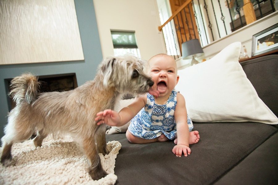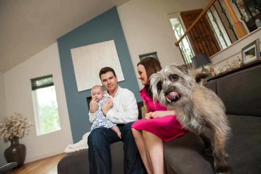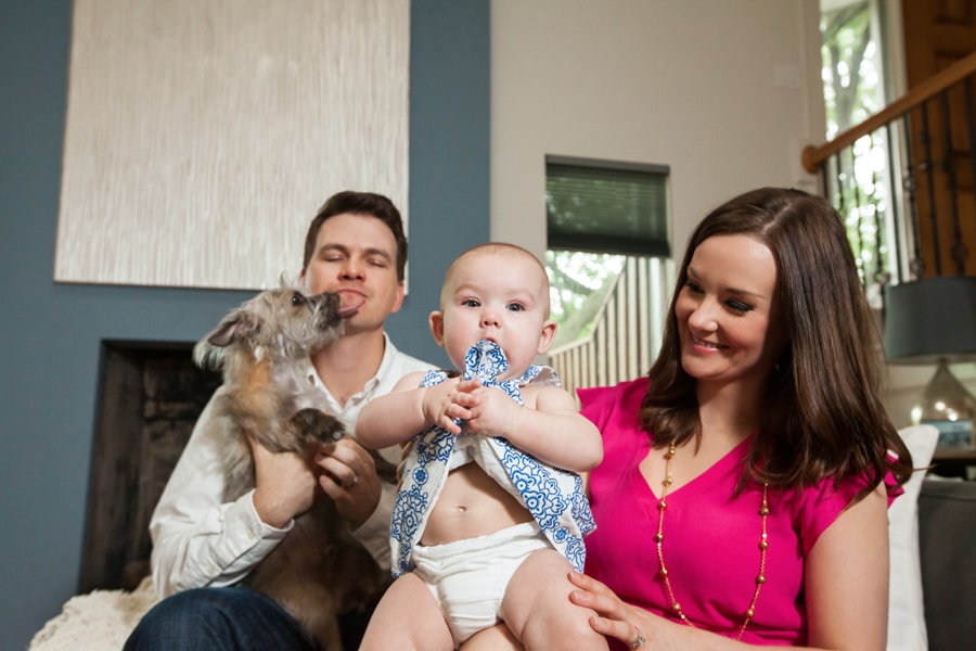 As with the last time I was at their home, the family dog also wanted to be a part of the action. He probably tried to find his way into every shot, unless someone was holding him off-camera. Baby didn’t seem to mind that much, even when he snuck in to lick her face.