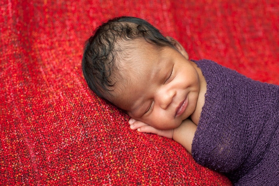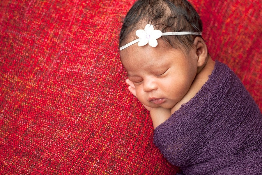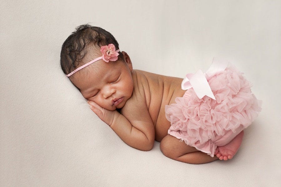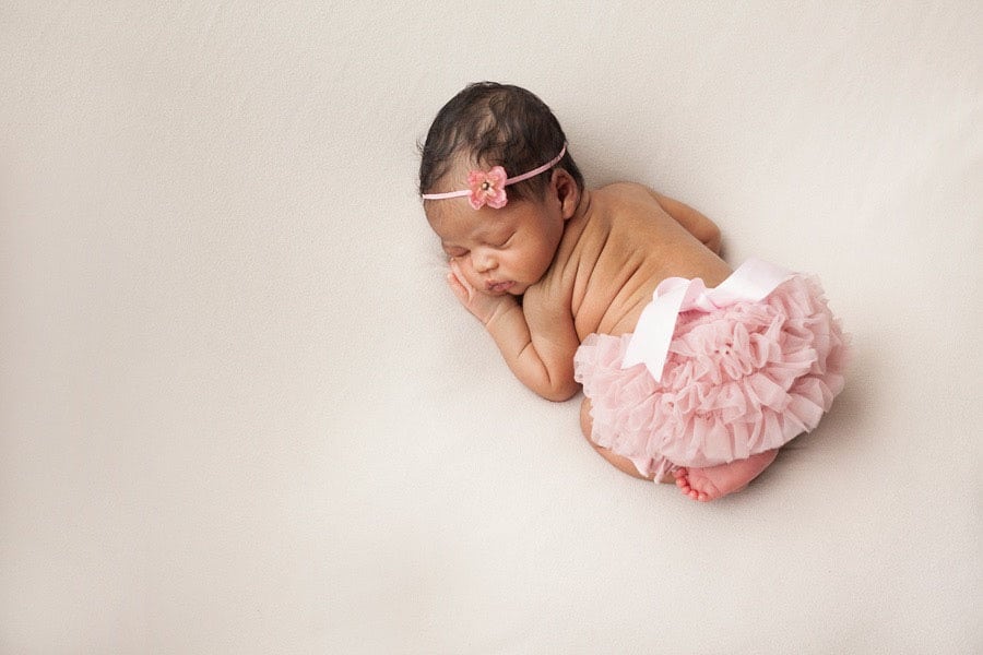 When you’re considering what baby photography props you want in your 1 month old newborn photography, think about what’s important to you. A sweet knitted hat or ruffly diaper cover, like below, can add color and texture to your photos. And, of course, they make them extra sweet because what’s cuter than a tiny baby in an adorable outfit?