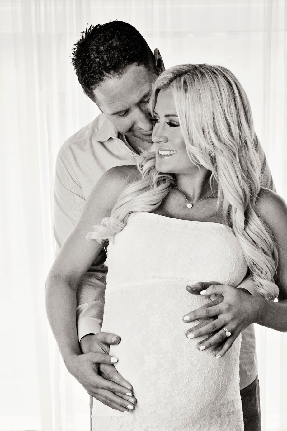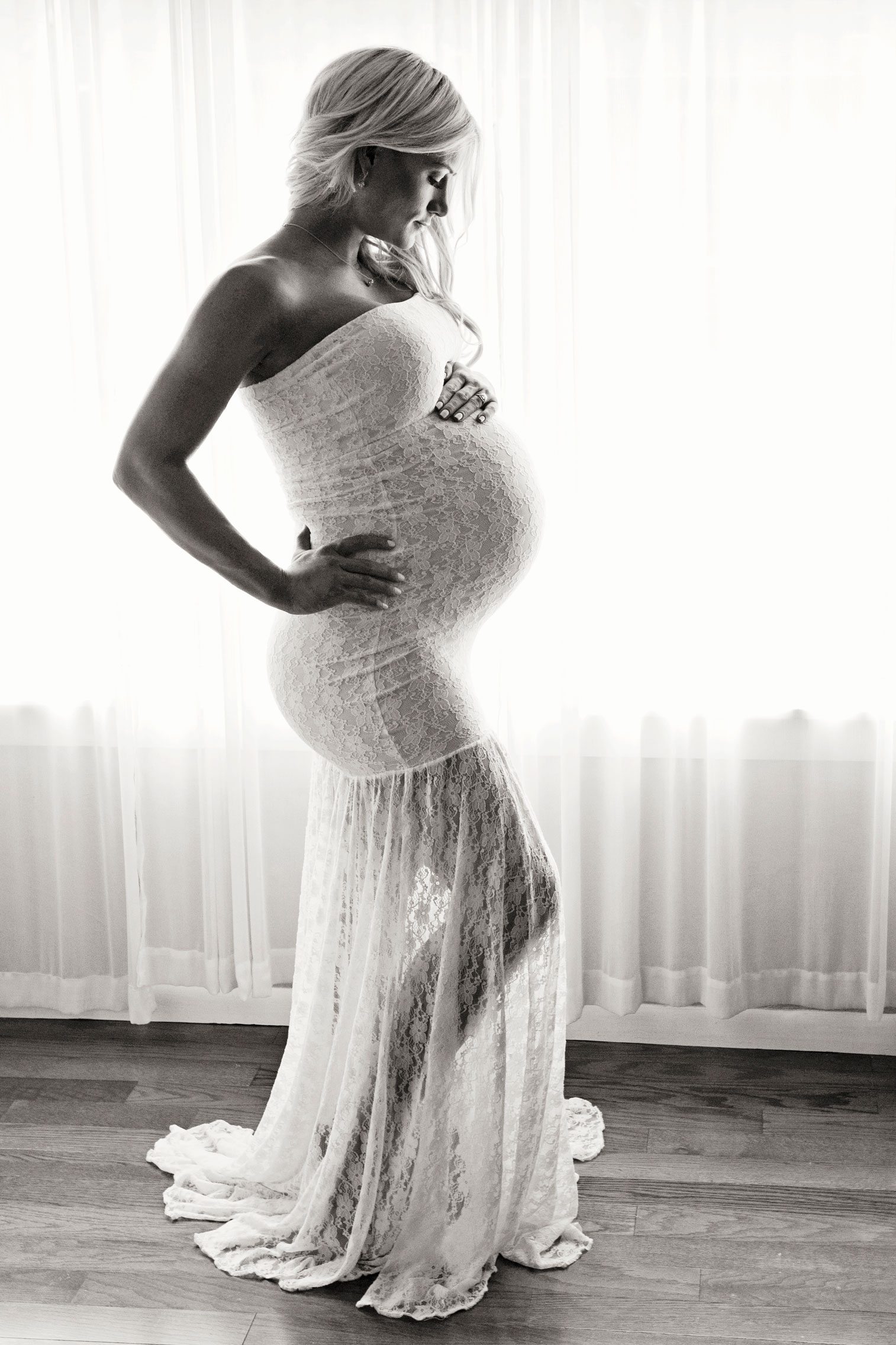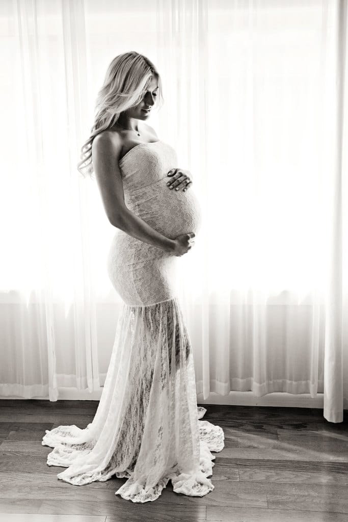 As a contrast to the color-block vibe are the shots that are almost white-washed. This mama slipped into the white lace dress, which brings in an amazing subtle detail. Lace is dainty and can be bold when shot the right way. When we stood her against the window with the soft drapes behind her… forget about it. So so beautiful. It really shows that you expecting ladies out there don’t have to go over the top to create that bold, glowing look.