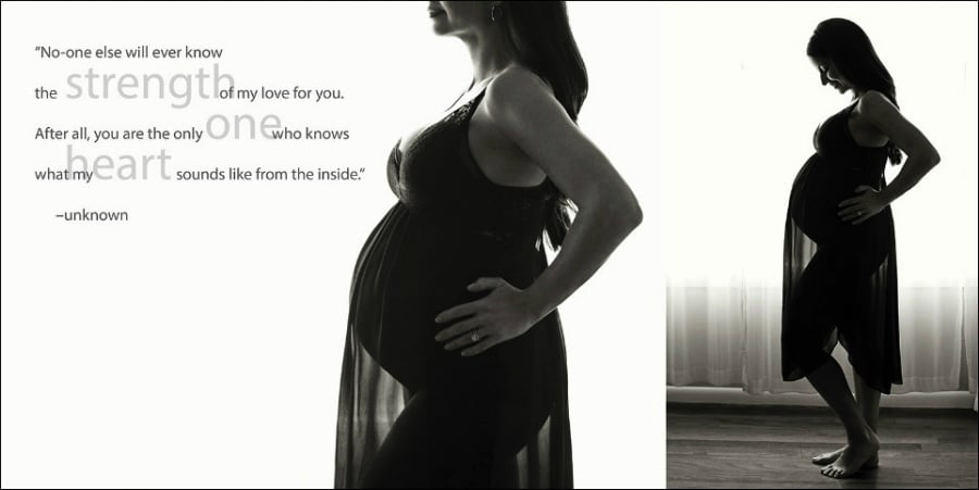 Today, I’m sharing a beautiful example of the maternity photo albums I create for my clients. The albums themselves are wedding style and of the highest quality with UV-coated board book pages. Above all, this is an heirloom to be treasured in your family for generations. Because the pages are such high quality, they won’t yellow or fade. And because my style is minimalist, the album will look timeless and as beautiful when your baby is all grown up as it does on the day you receive it. Your grandchildren can appreciate the wonderful photos you took so many years before.
