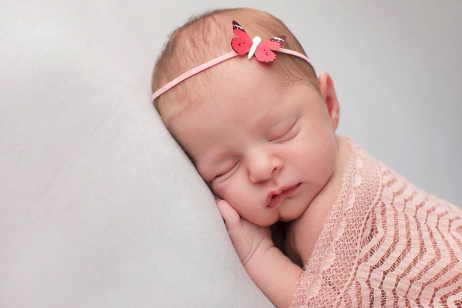 When I talk to a pregnant mama about her soon-to-be newborn photo session, we always discuss outfits and props. My style has been called minimalist, so while I embrace newborn girl outfits, I don’t want to overdo it. I want the focus of the image to be your precious baby, not a giant headband and half a dozen things around her. This can be a challenge for some parents because there are just so many adorable possibilities and a desire to include them all! But trust me, editing your selections really does look best.