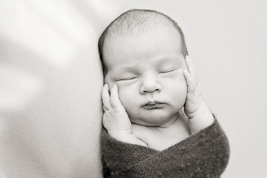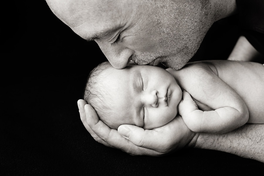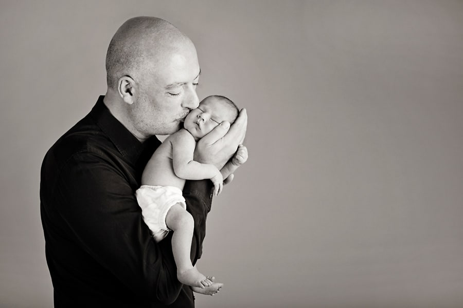 A newborn photo session offers great flexibility for capturing family members and their interactions with the baby. I think it’s always good to have lots of photos of the newborn, and also to include mom, siblings, dad, grandparents. I’ve even had clients bring the family dog for a newborn photo session. The more the merrier. Very few events in life bring as much joy as a new member of the family and it’s wonderful to include lots of people in the celebratory photos.