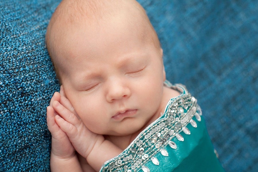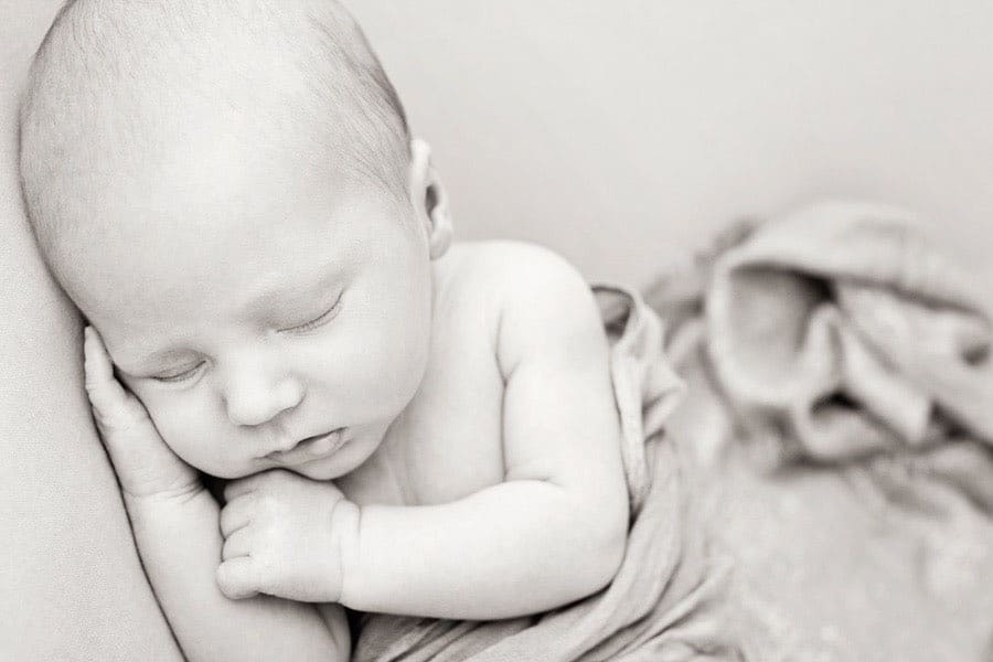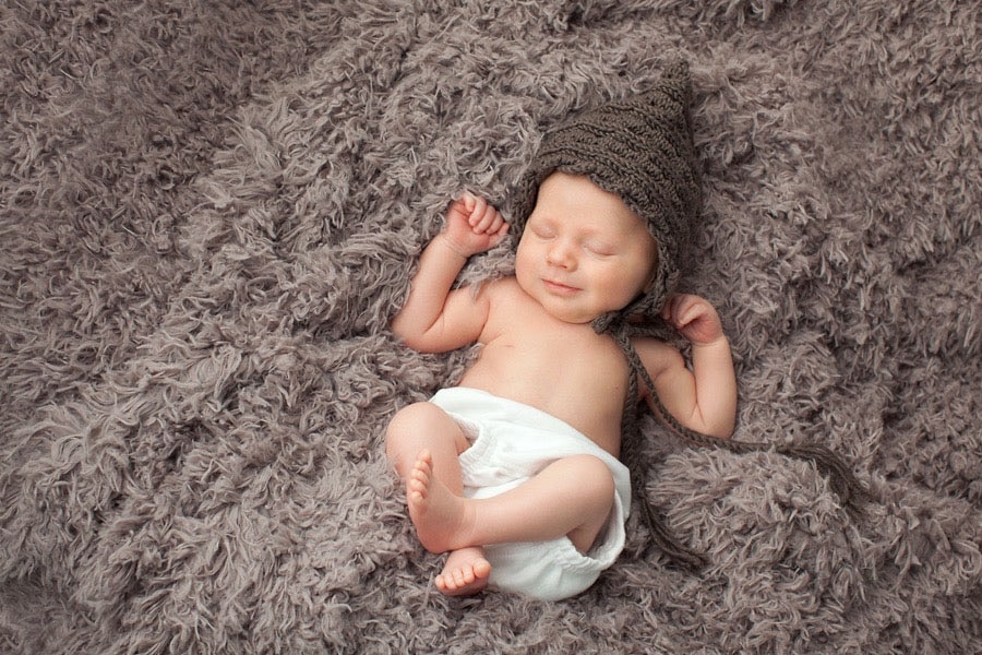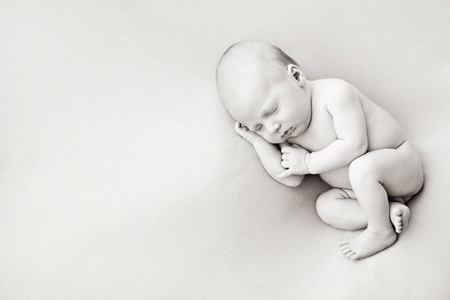 I usually provide 80-100 final photos to families after their newborn photo session, and they’re all keepers. You’ll find close-ups of their face and features. In addition, varied angles, black-and-white and color images, and poses on different textures including soft blankets and wraps. Many are nude because nothing is cuter than a naked little baby. A simple diaper cover or crocheted hat also makes for a pleasing look. Check out the photos below to get an idea of what I mean.