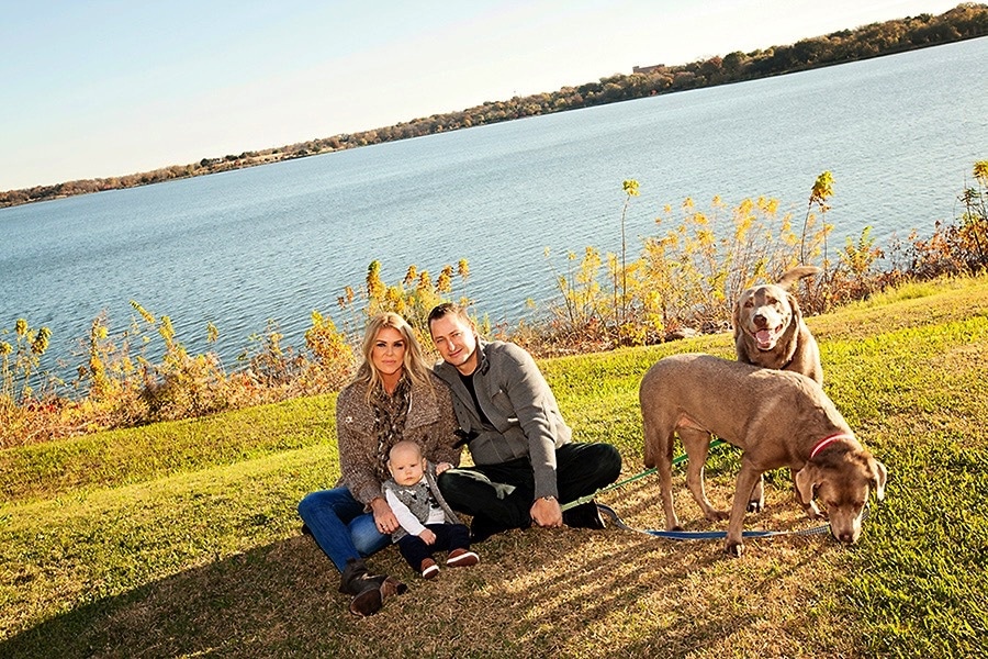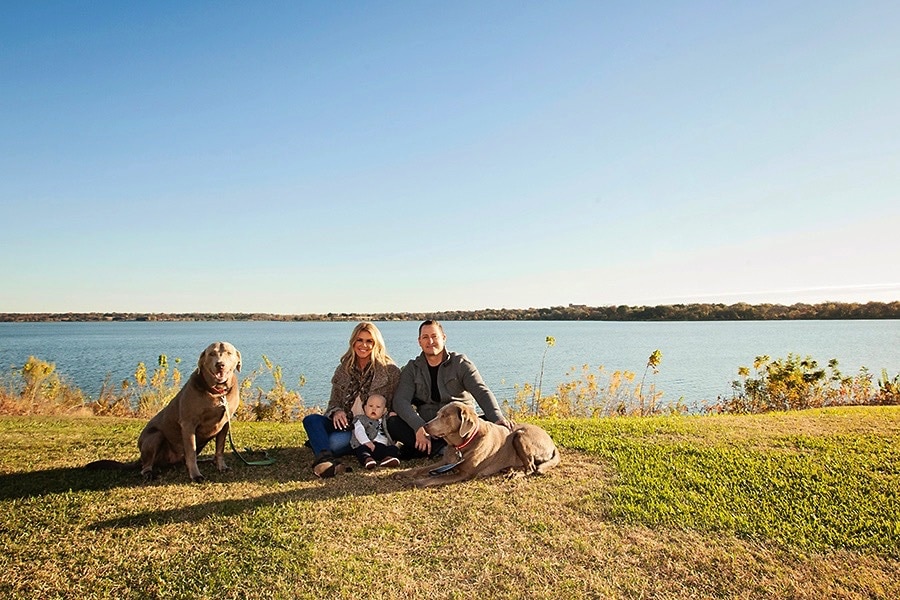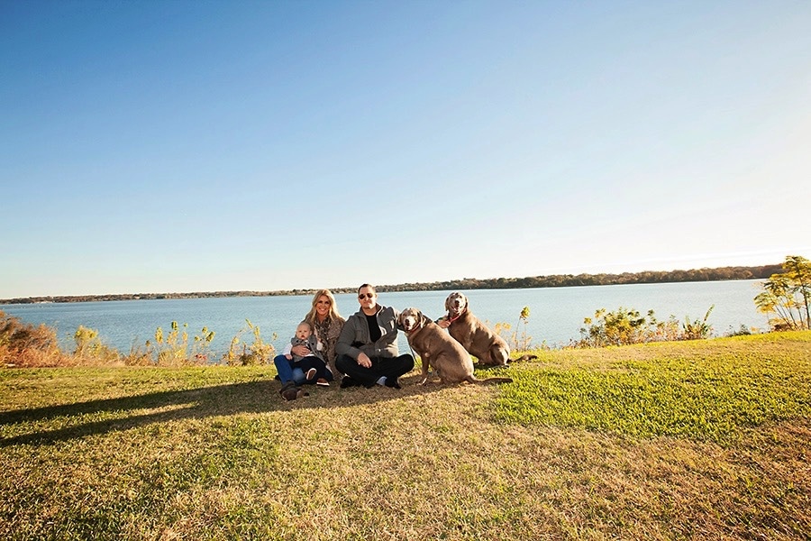 Today, I’m sharing a family photography session near White Rock Lake in East Dallas. I love the entire area! Wide-open spaces, arching shade trees, lots of wildlife, the lake itself. And so many people having fun biking, walking, running, and picnicking. It’s a friendly atmosphere. This family chose to go to White Rock Lake because they live nearby and wanted to include their dogs in the pictures. The pups love to go to the lake and run around. Plus, there’s a dog park nearby, so they’re quite familiar with everything in the area. Baby boy was nine months old and mom and dad wanted something different from the usual studio photos to commemorate this milestone.