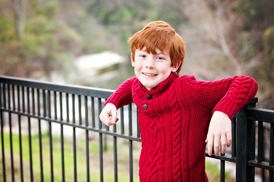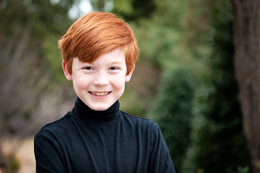 I’m sharing some shots from a recent outdoor session with a cute ginger. This middle schooler has a mop of thick red hair and the most charming personality you can imagine. We took a number of shots in an outdoor park and his smile just lit up the overcast day. He wanted to show off his funniest and silliest moves. I also love a few of the more candid shots in the set, they are so fun!