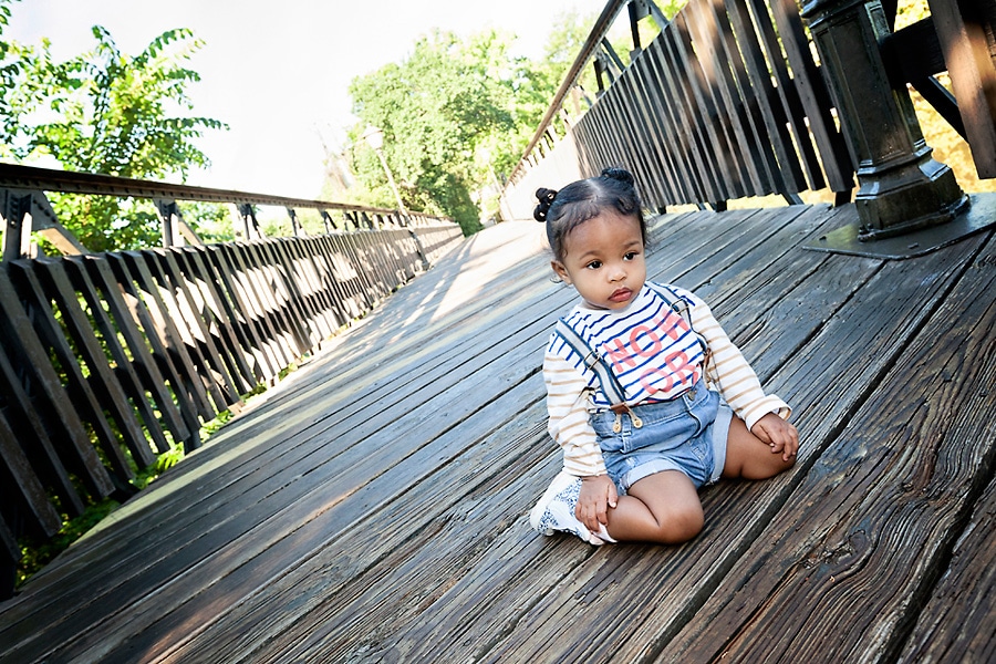 Photographing children outdoors creates a lot of distractions, especially if you’re in a public place, like a park. Everything from birds to dogs to passers by can cause a kid to look away from the camera. For this reason, it’s important to have patience an some tricks up your sleeve for getting their attention. I make all kinds of ridiculous noises and gestures during a shoot like this. Good thing I excel at looking ridiculous.