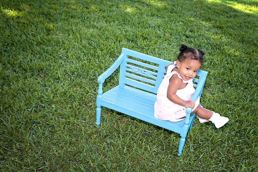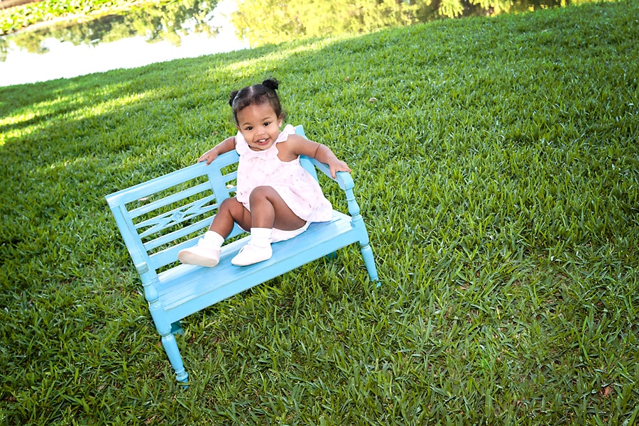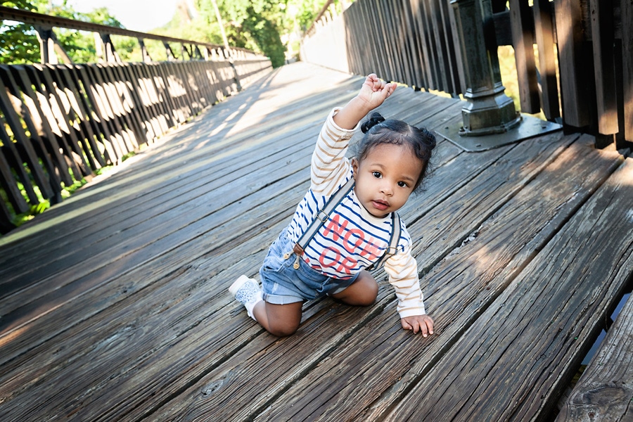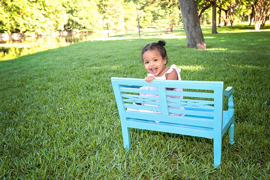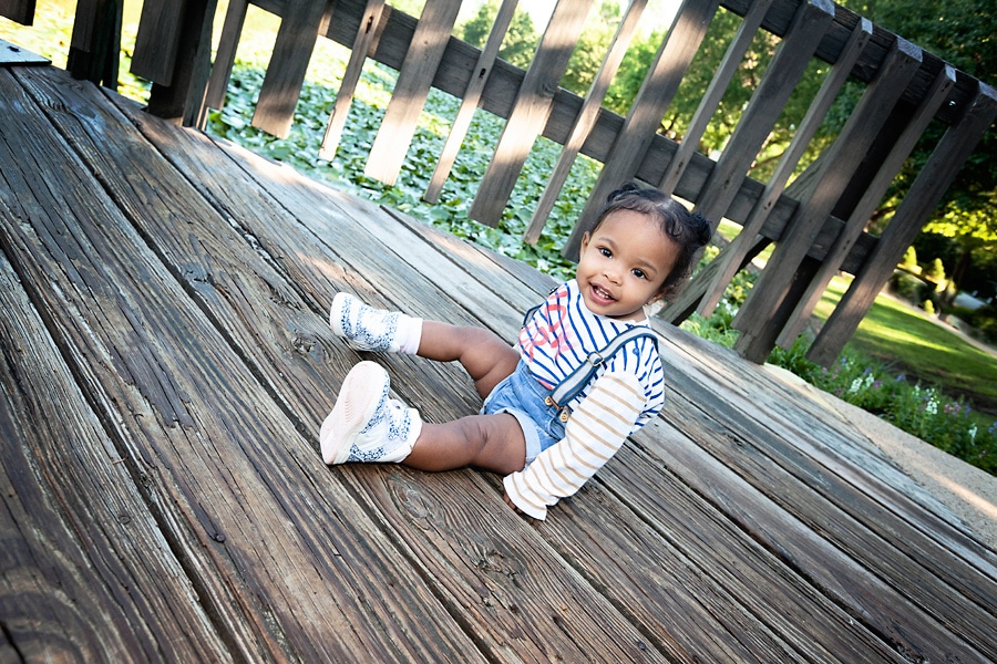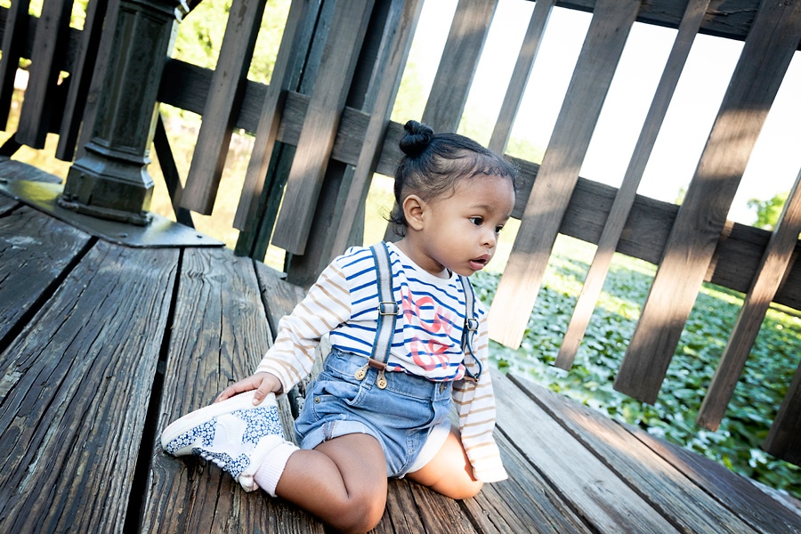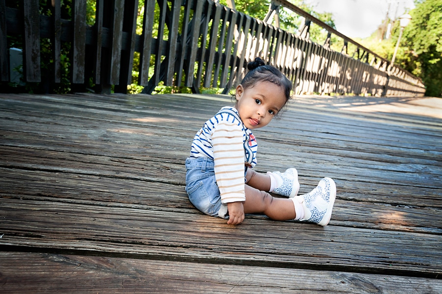 This week’s photos are of a repeat client. This was her one-year photo shoot and her parents wanted it to be outdoors at a local park. She was full of personality and really did well, despite any distractions. As you can see from the photos, I employed several of the strategies I mentioned above. The result is a series of super-cute toddler photos of a sweet little girl. I hope you enjoy and have good luck photographing your own children outdoors.