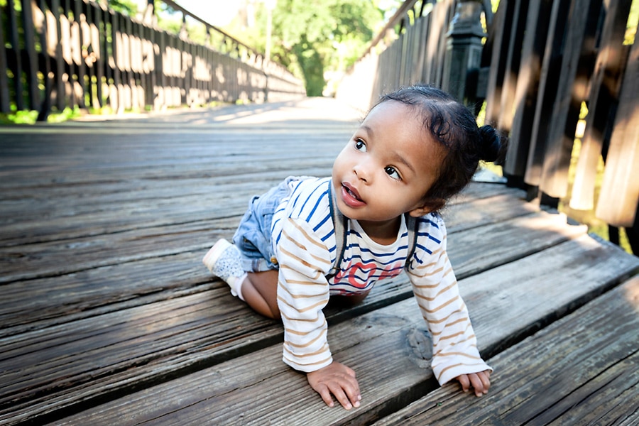 Another consideration when photographing children outdoors is the background of your photo. In addition to people and animals wandering into the picture, trees and bushes can interrupt a shot. It could look like a branch is coming out of a child’s head, for example. One way to solve that problem is to make the background blurry, a photographic term called “bokeh.” Another strategy is to shoot a little bit down onto the child, instead of straight on. Just being aware of the background goes a long way to producing great results.