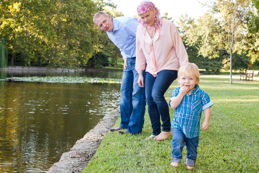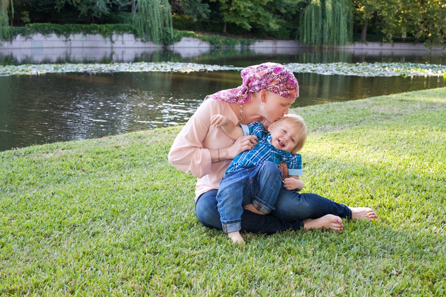 For this family photography session, Mom was going through chemo and wanted a special shoot with her boys. We chose to do it outside at a favorite park location of mine in the Dallas area. The weather happily obliged that day, and we got tons of rich green trees and clear skies.