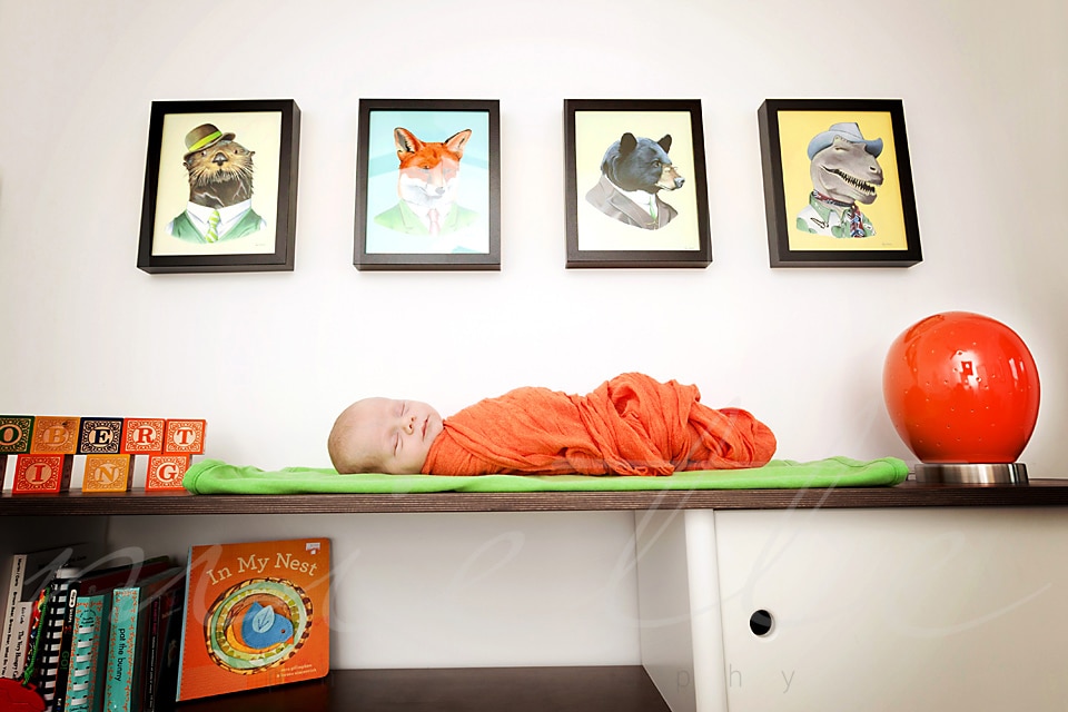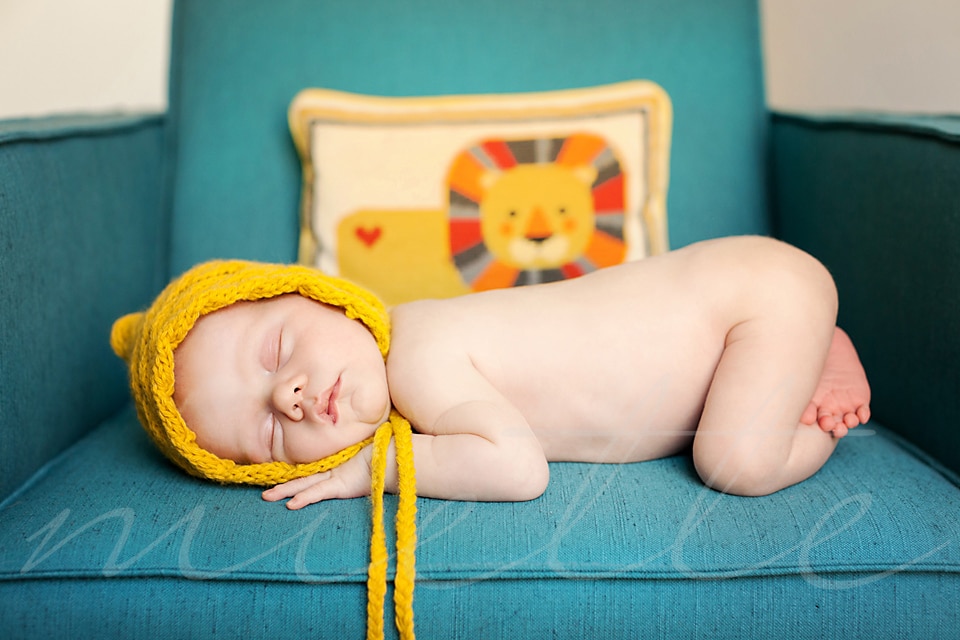 In our pre-session consultation (this one via phone) I discussed with the client their home decor and the look they wanted for the shoot overall. They have a modern home with colorful, slightly Mid-Century style furniture and decor. We came away with an idea to incorporate a lot of the furniture as props and some of their accessories as design elements in the photos. They now have large photos to hang on their walls that will match not only their personal aesthetic but their space as well. I also threw in a couple of funny ones of the couple asleep in-between prop changes. Newborn babies are EXHAUSTING and you have to catch asleep where you can.
