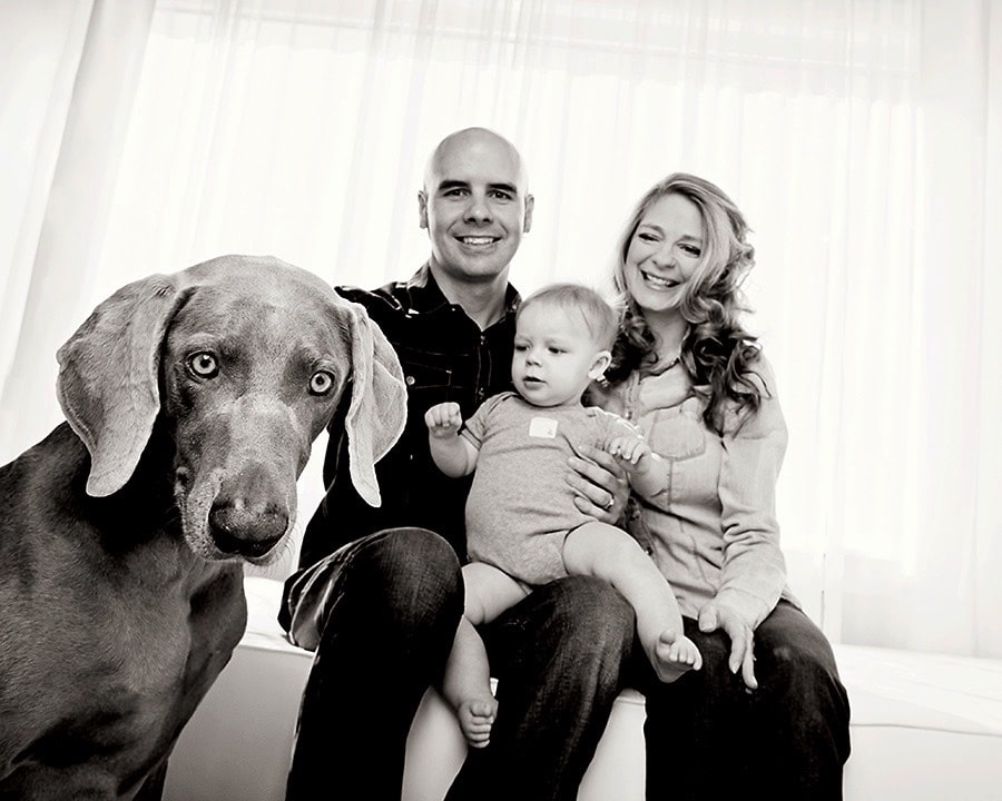 Mom, dad, and their nine-month-old son arrived at my Dallas studio for a session with doggie in tow. We took plenty of all four of them together. We also took smaller groupings, like mom and baby, dad and baby, and doggie and baby. The photos of the little boy and his dog are especially adorable, I think. It captures that classic relationship between child and his best friend.